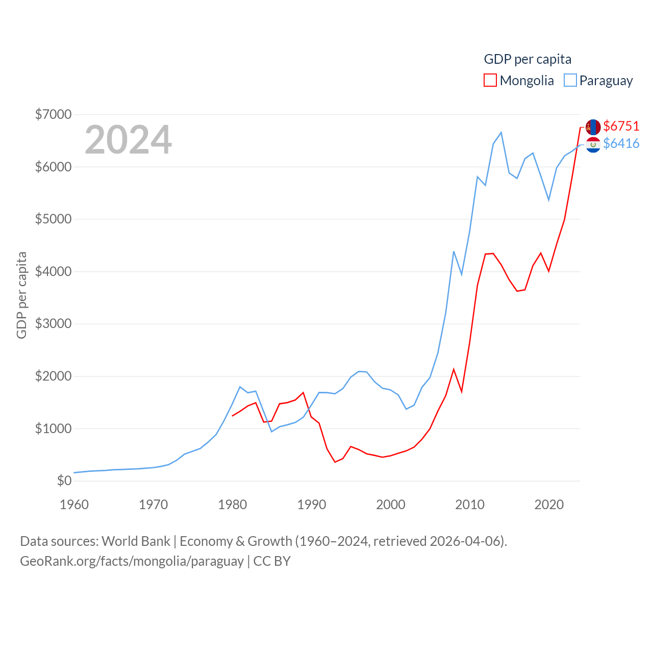 Mongolia and Paraguay economies compared