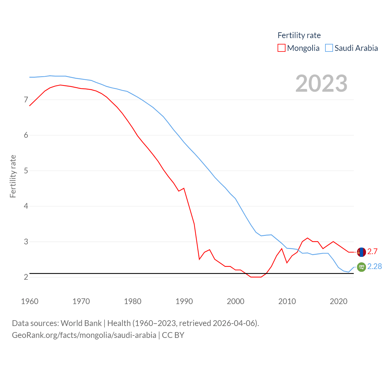 - World Bank | Health (1960–2025, retrieved 2026-04-06)