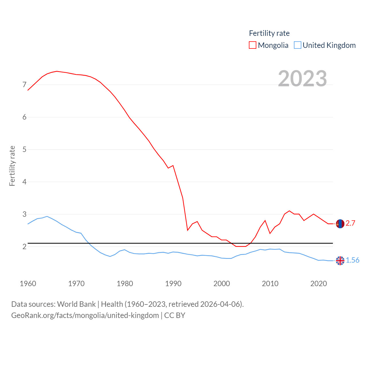 - World Bank | Health (1960–2025, retrieved 2026-04-06)