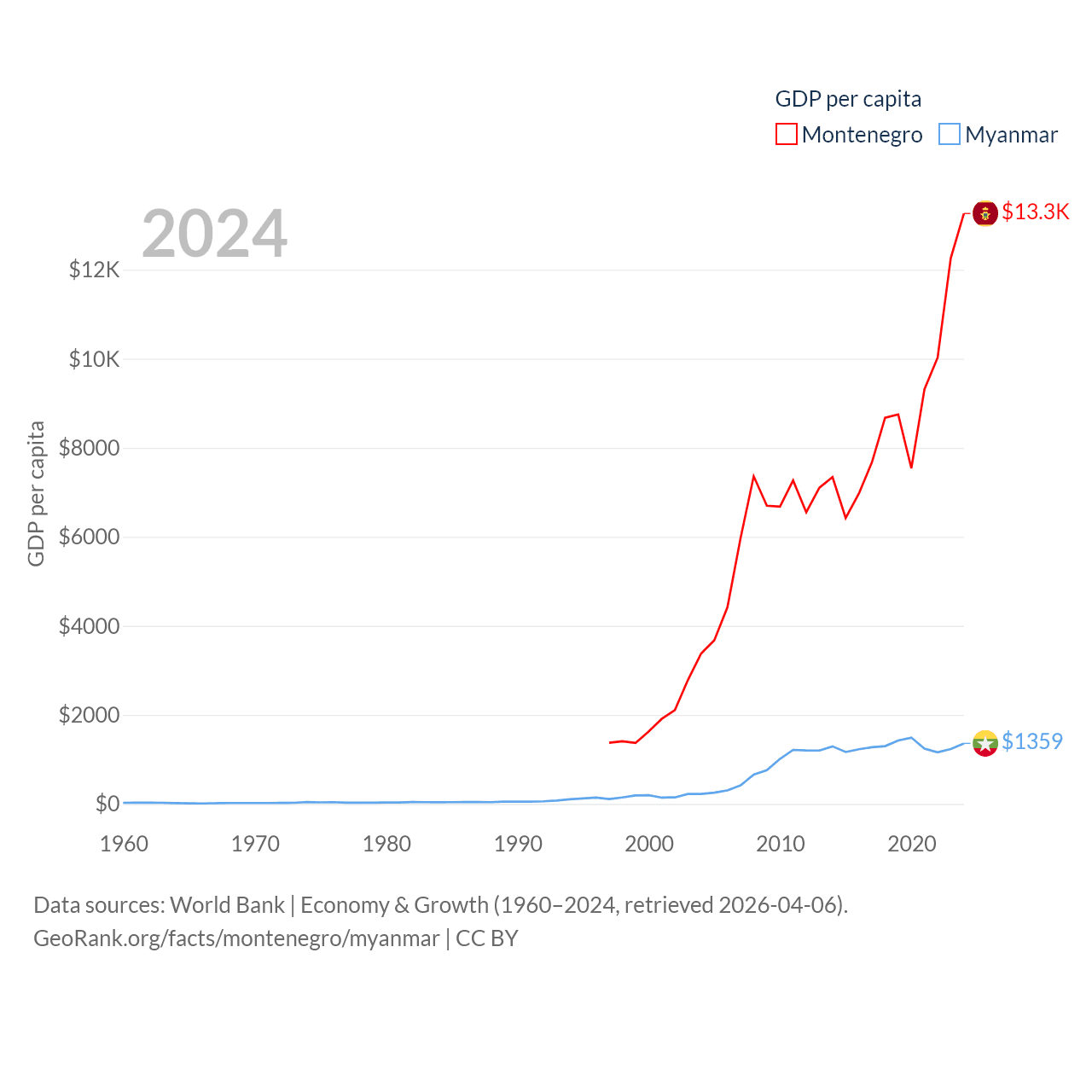 Montenegro and Myanmar economies compared
