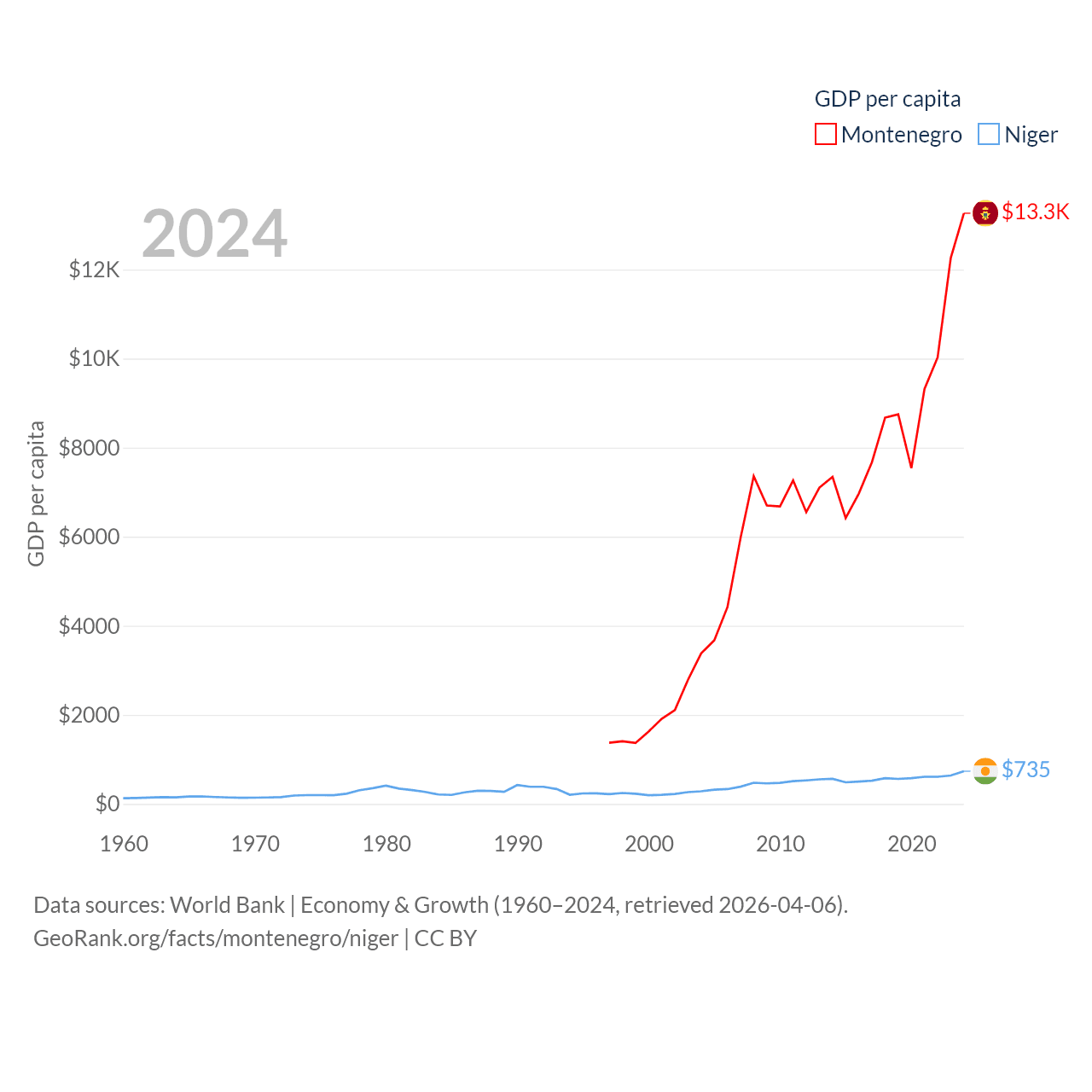 Montenegro and Niger economies compared