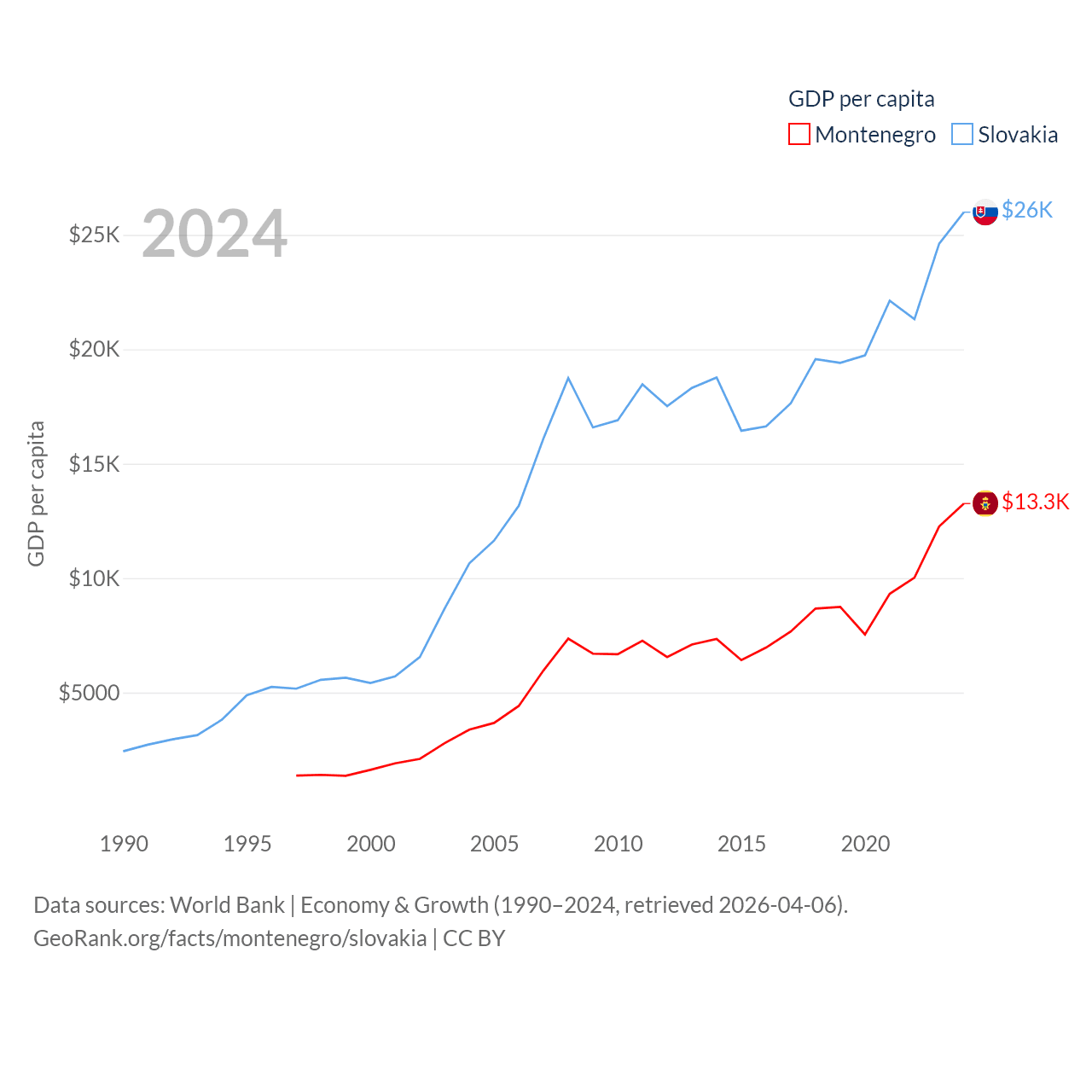 Data sources: World Bank | Economy & Growth (1990–2024, retrieved 2026-04-06).