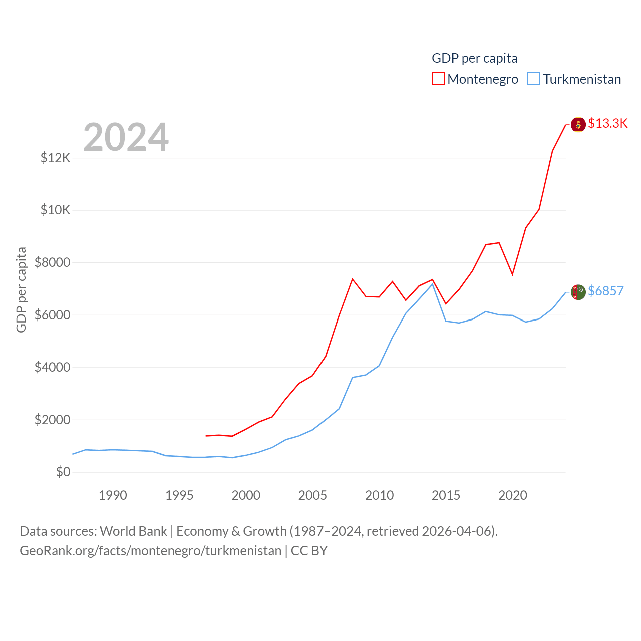 Data sources: World Bank | Economy & Growth (1987–2024, retrieved 2026-04-06).