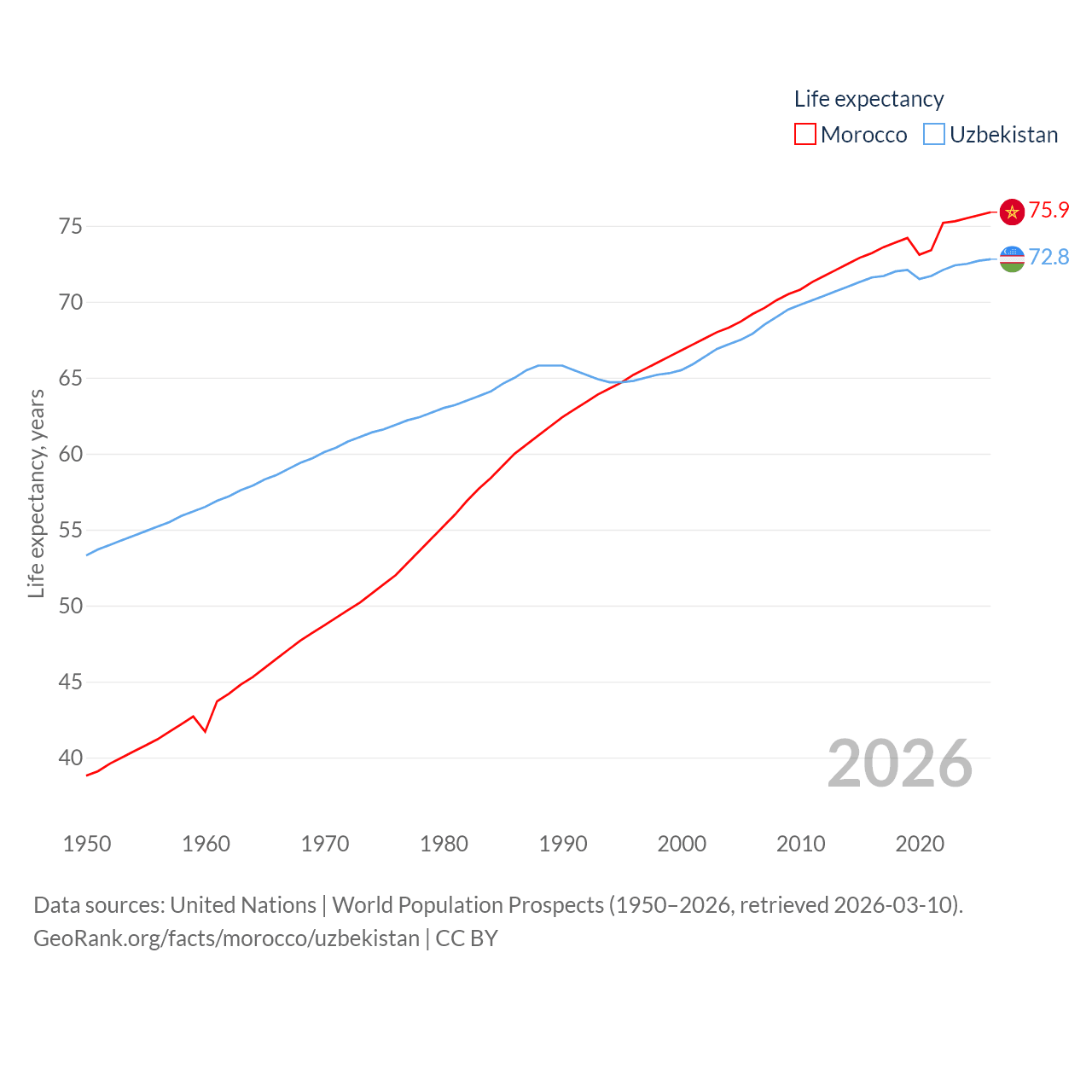- United Nations | World Population Prospects (1950–2026, retrieved 2026-03-10)