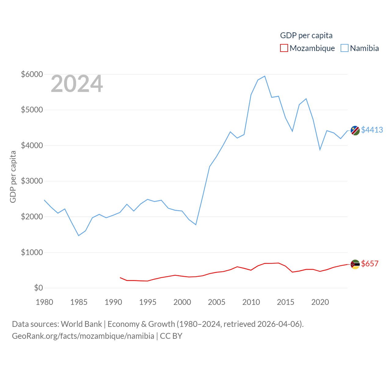 Data sources: World Bank | Economy & Growth (1980–2024, retrieved 2026-04-06).
