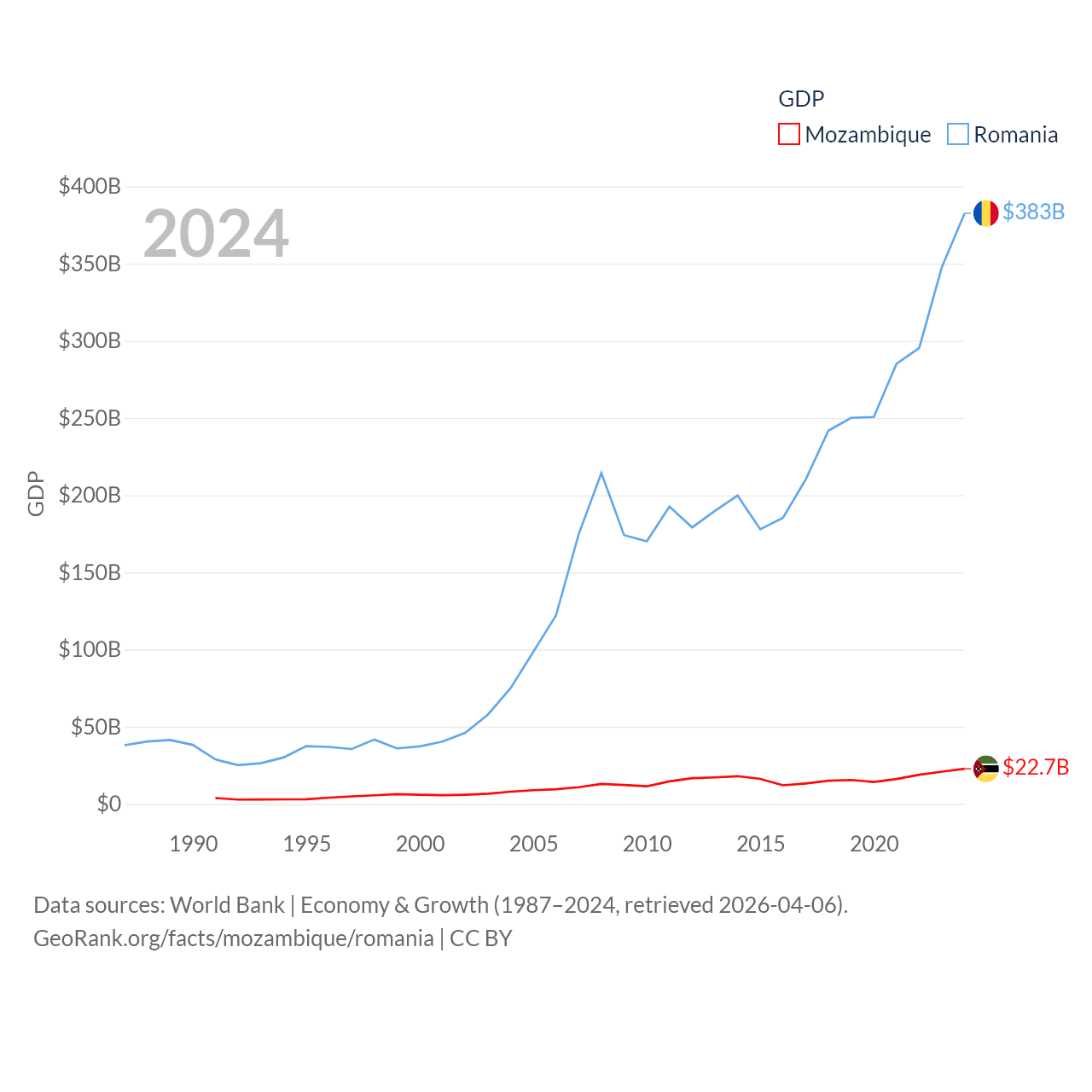 Data sources: World Bank | Economy & Growth (1987–2024, retrieved 2026-04-06).