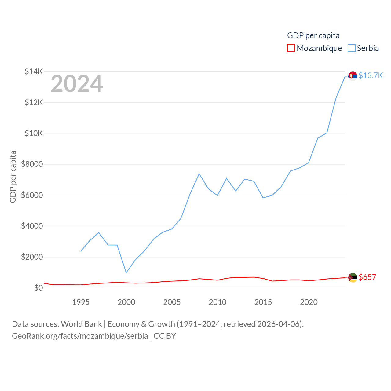 Data sources: World Bank | Economy & Growth (1991–2024, retrieved 2026-04-06).