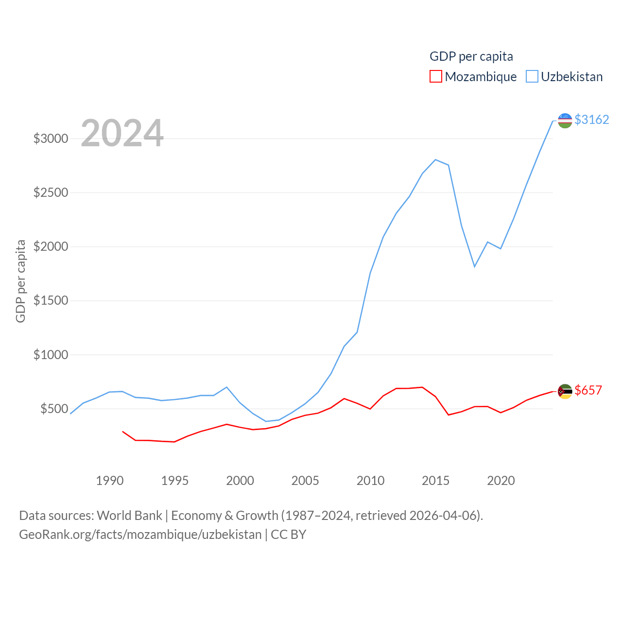 Data sources: World Bank | Economy & Growth (1987–2024, retrieved 2026-04-06).
