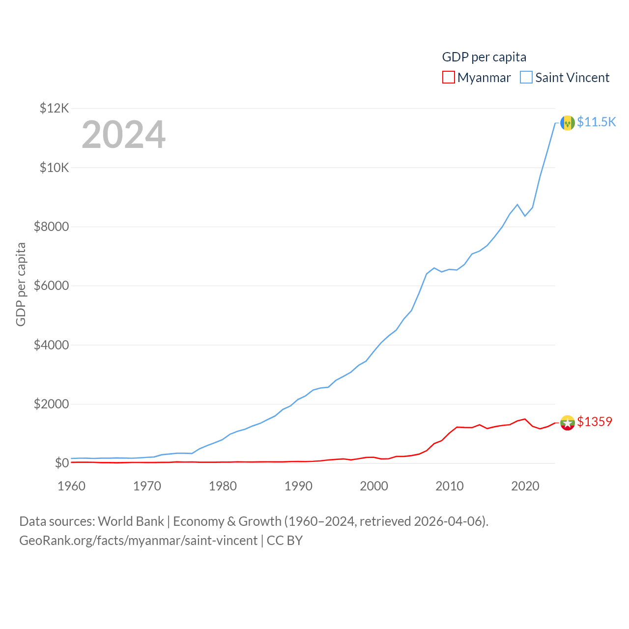 Myanmar and Saint Vincent economies compared