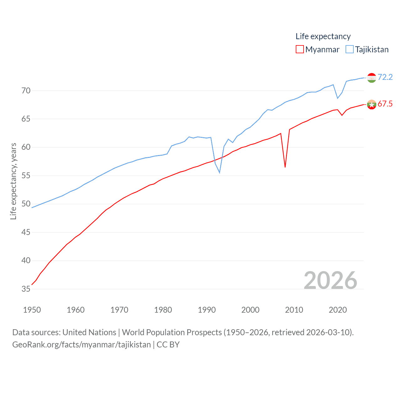 - United Nations | World Population Prospects (1950–2026, retrieved 2026-03-10)