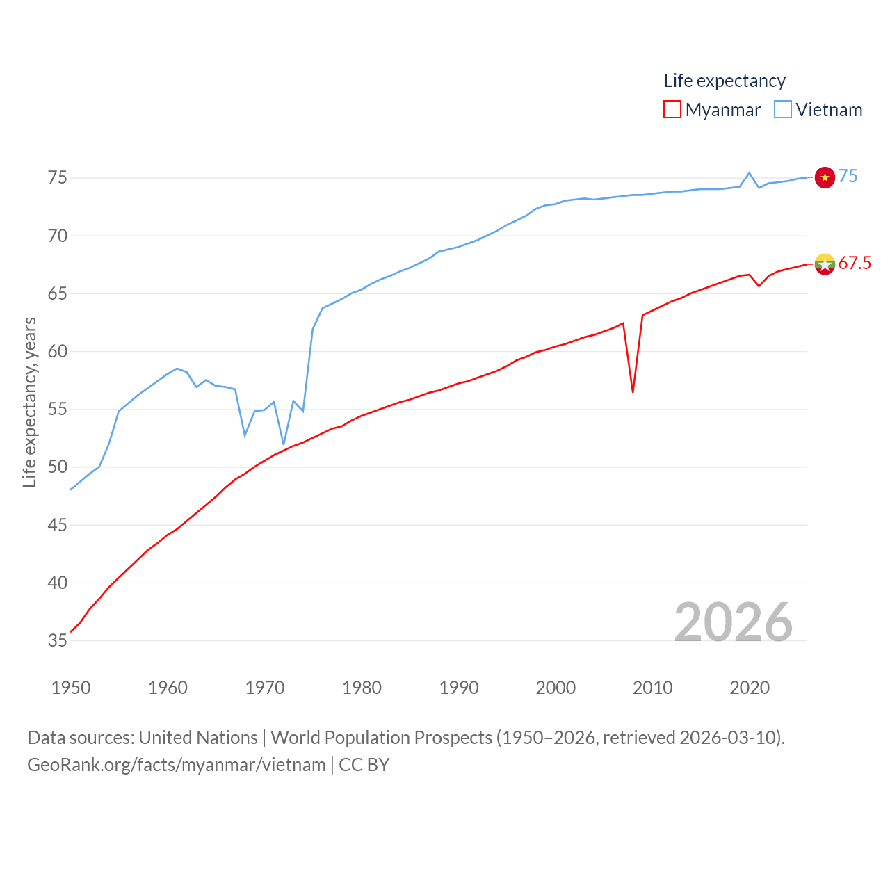 - United Nations | World Population Prospects (1950–2026, retrieved 2026-03-10)