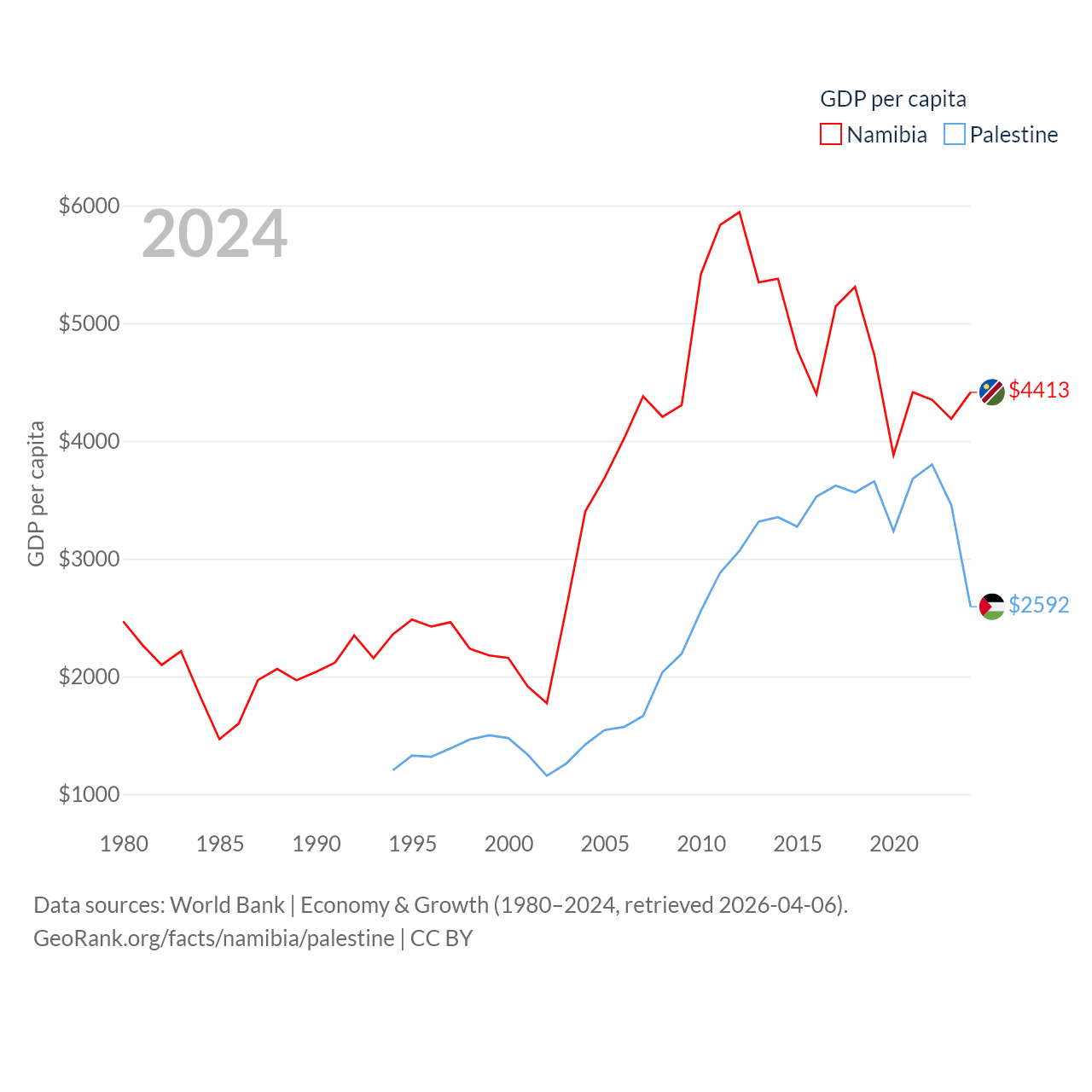Data sources: World Bank | Economy & Growth (1980–2024, retrieved 2026-04-06).