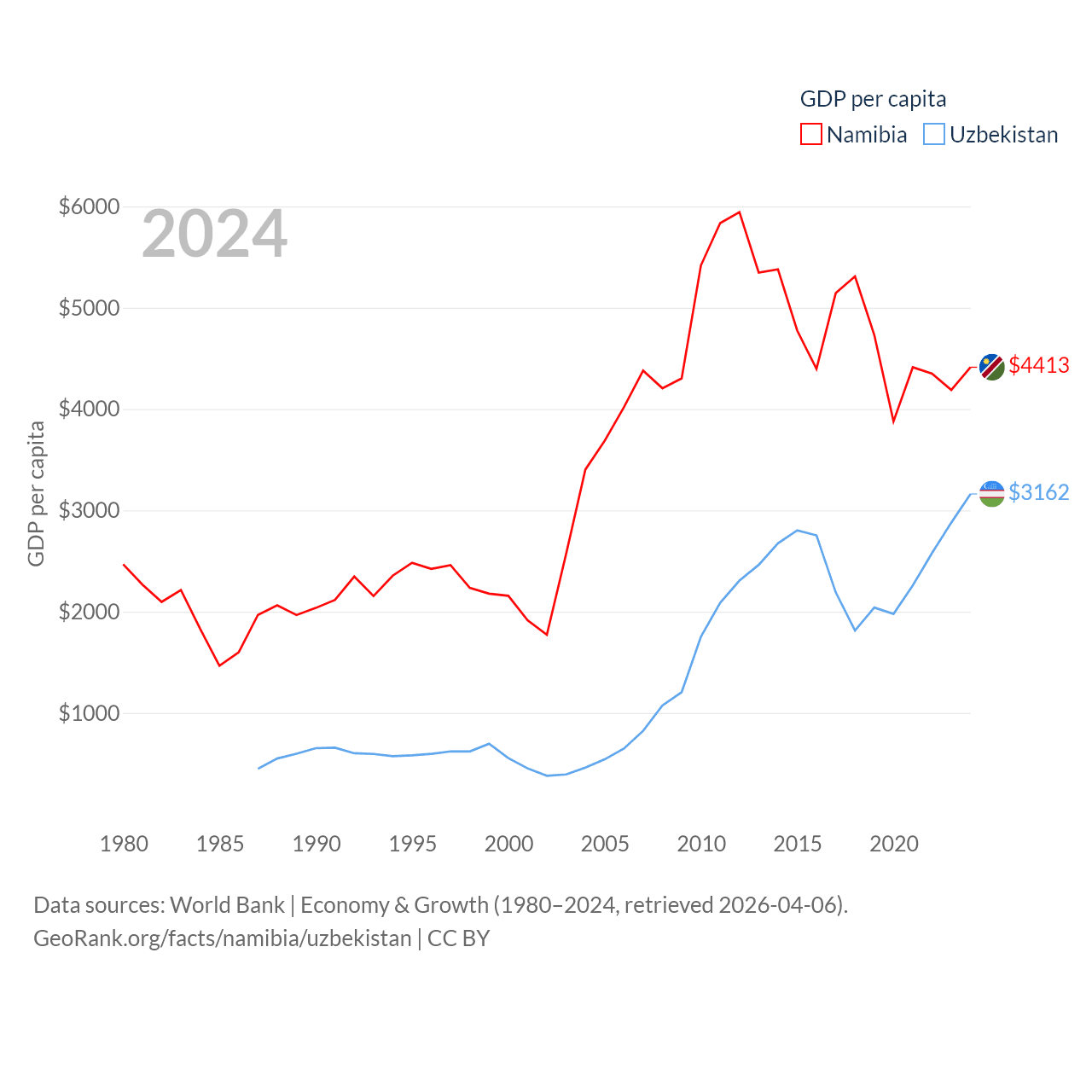 Data sources: World Bank | Economy & Growth (1980–2024, retrieved 2026-04-06).