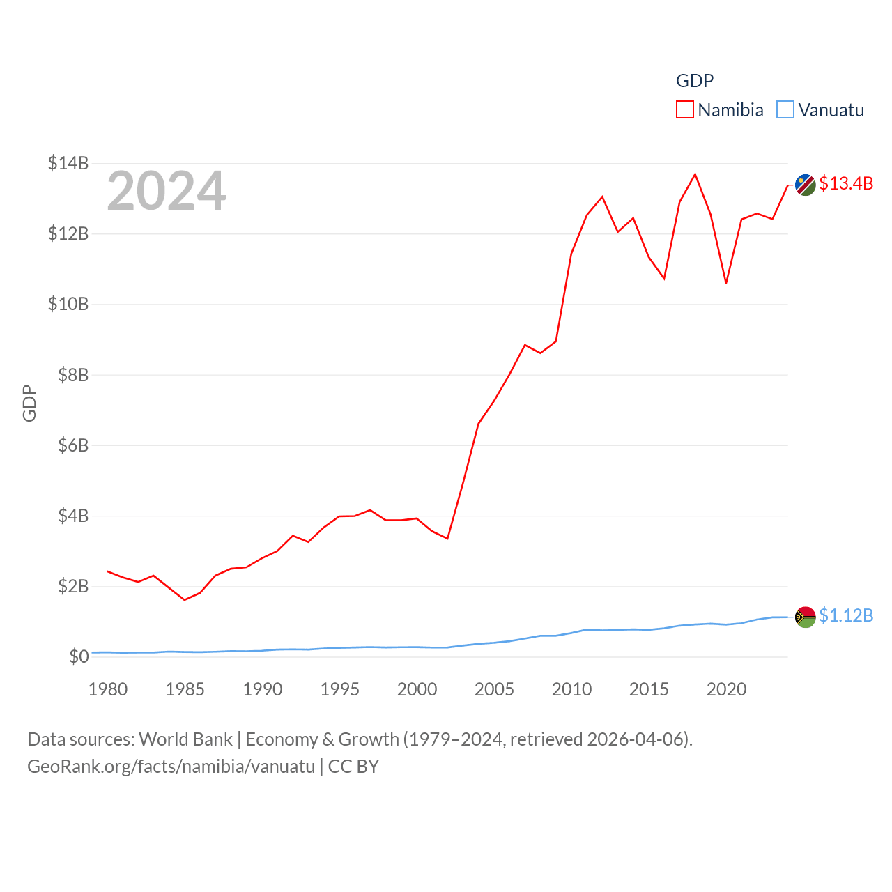 Data sources: World Bank | Economy & Growth (1979–2024, retrieved 2026-04-06).