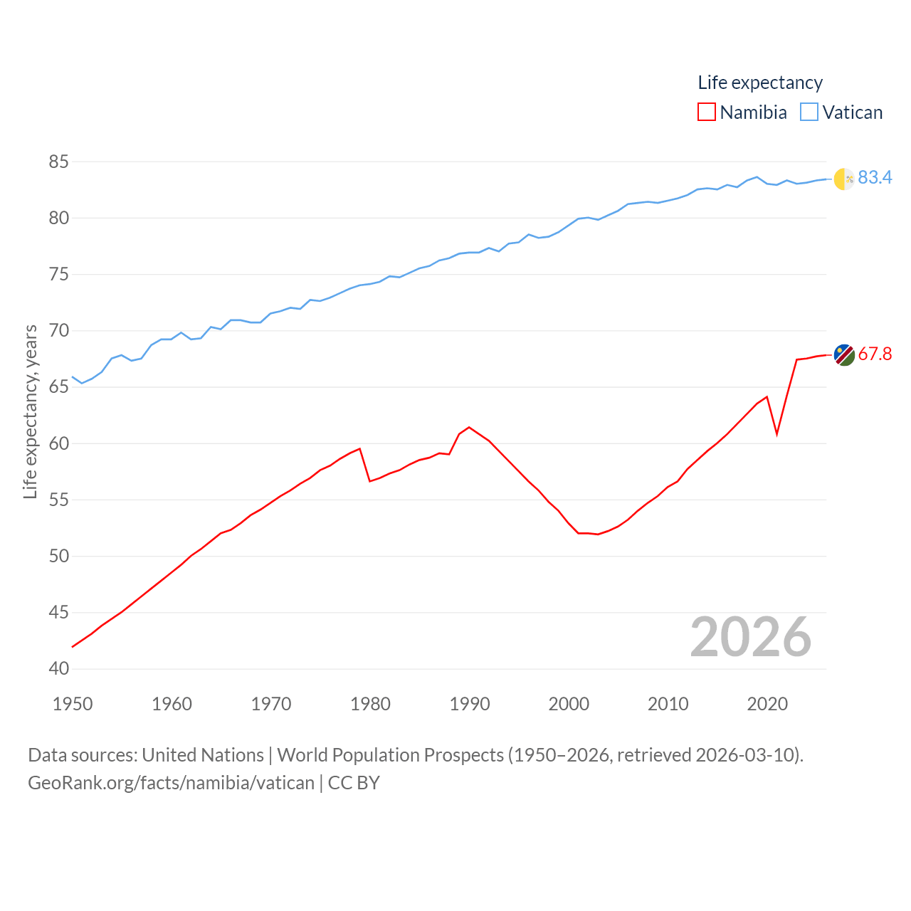 Namibia vs. Vatican life expectancy calculator