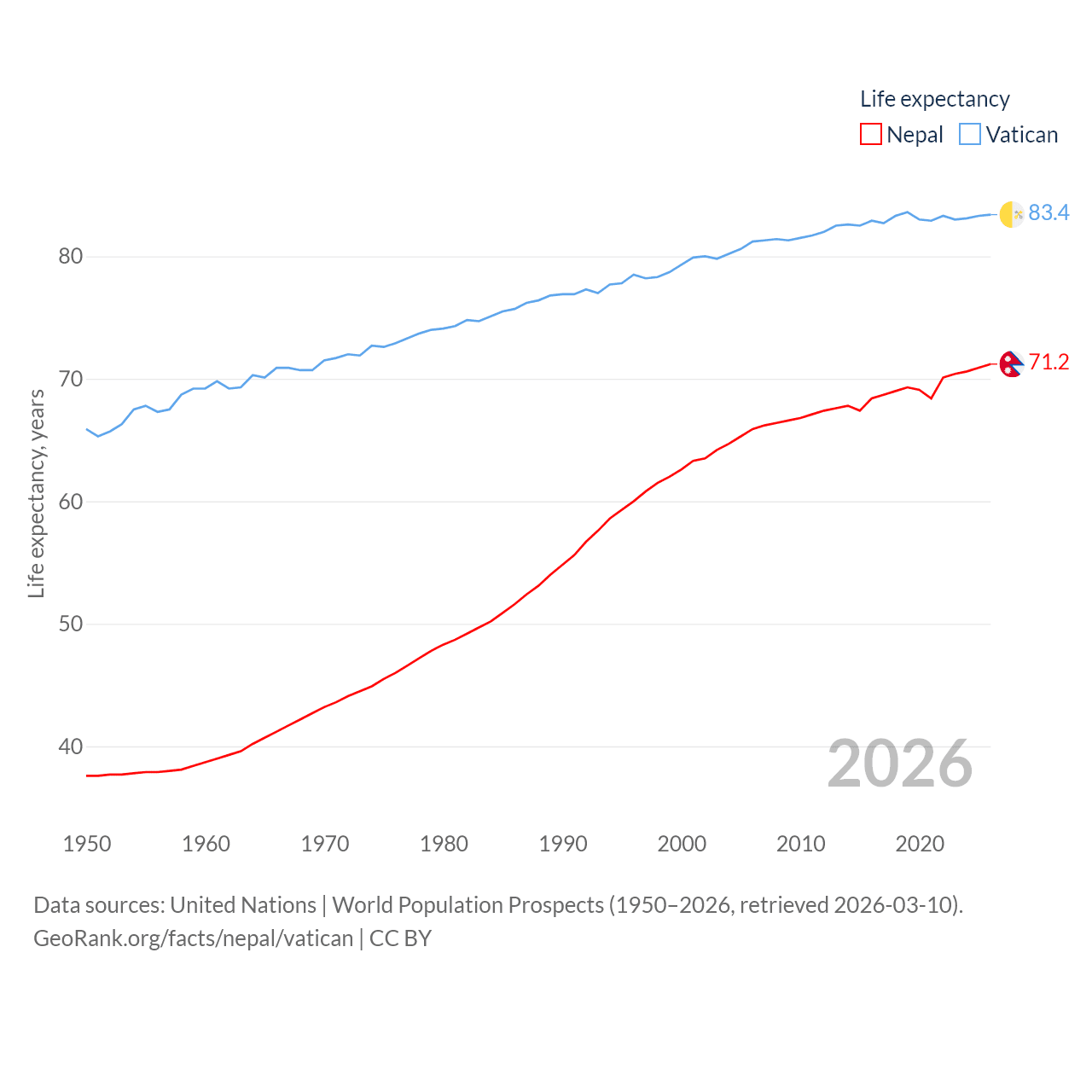 Nepal vs. Vatican life expectancy calculator