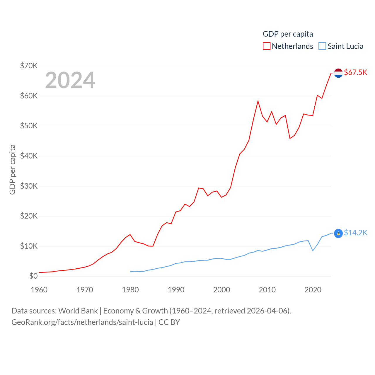 Netherlands and Saint Lucia economies compared