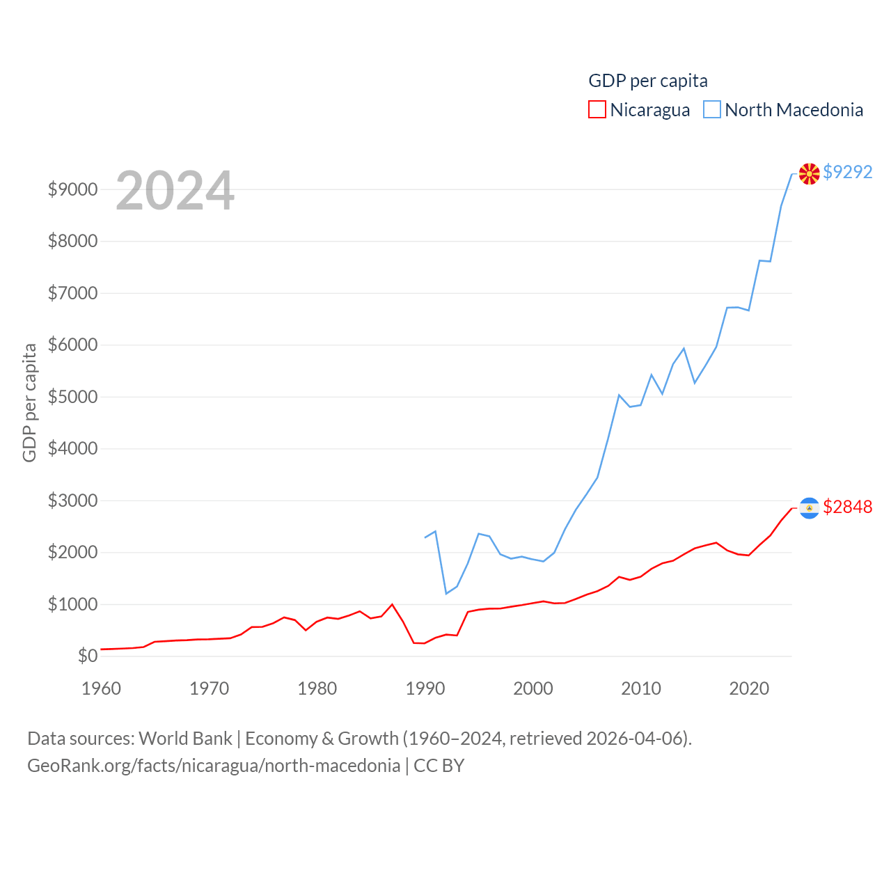 Nicaragua and North Macedonia economies compared