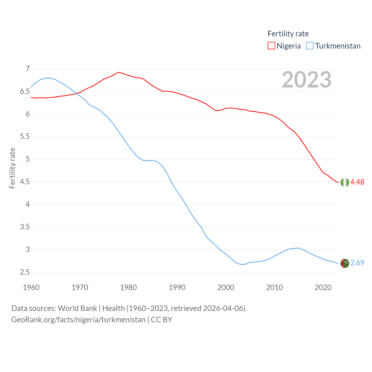 - World Bank | Health (1960–2025, retrieved 2026-04-06)