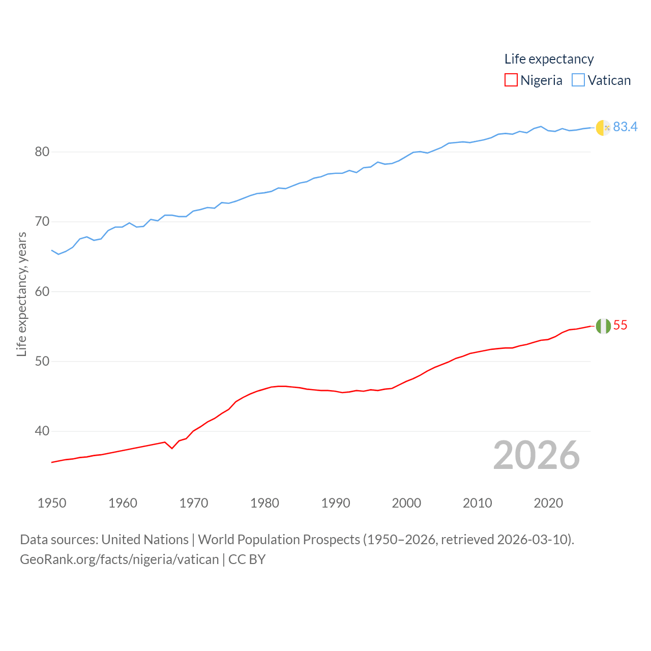 Nigeria vs. Vatican life expectancy calculator