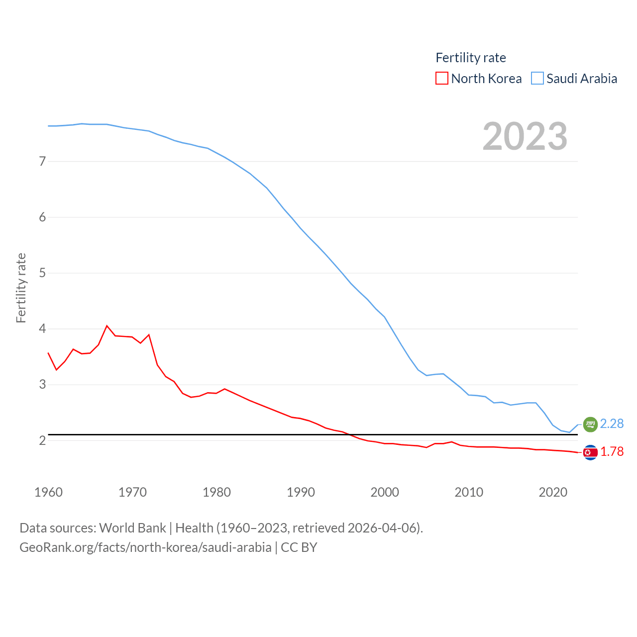 - World Bank | Health (1960–2025, retrieved 2026-04-06)
