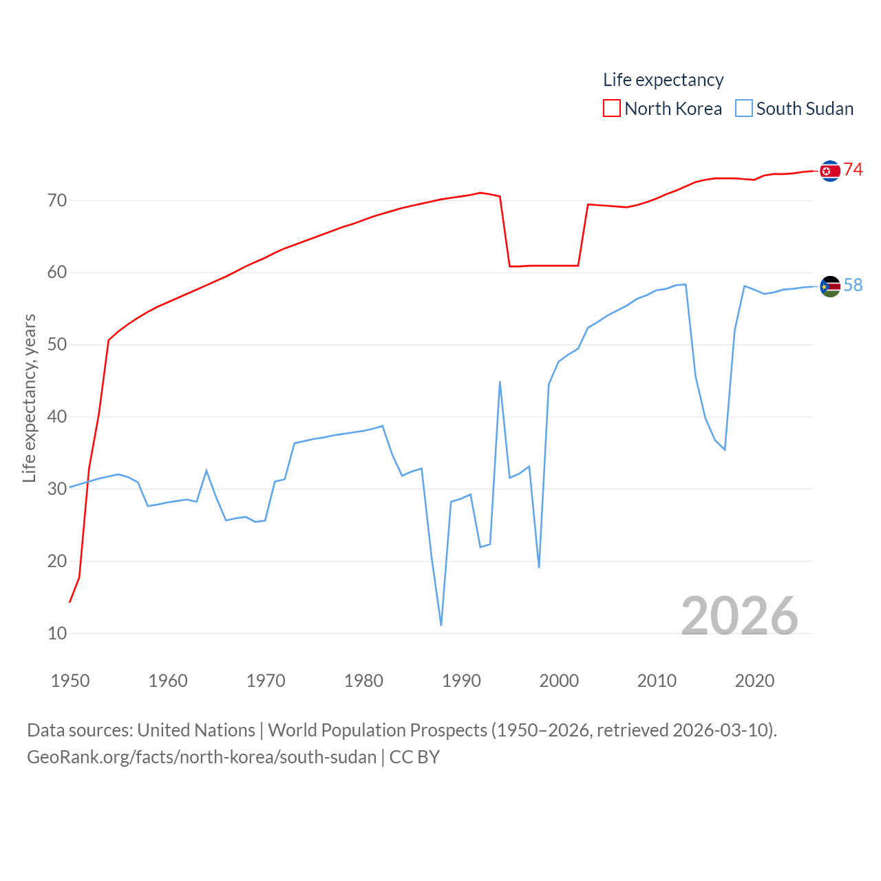 North Korea vs. South Sudan life expectancy calculator