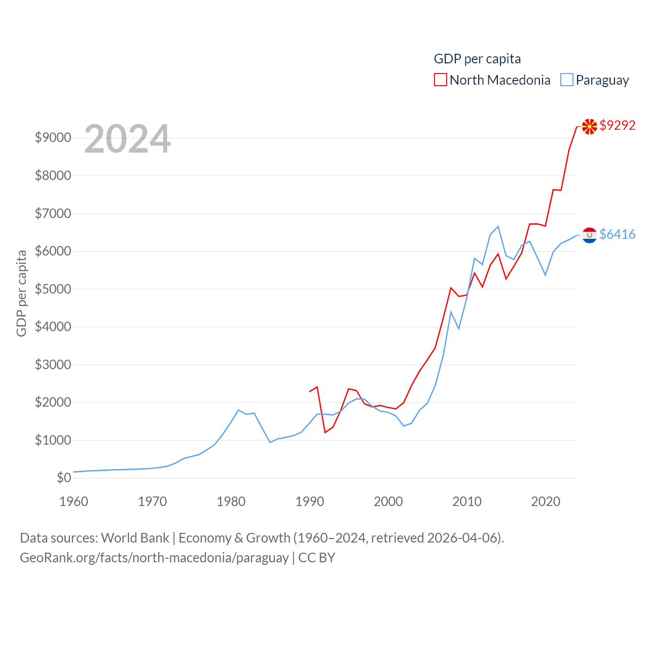 North Macedonia and Paraguay economies compared