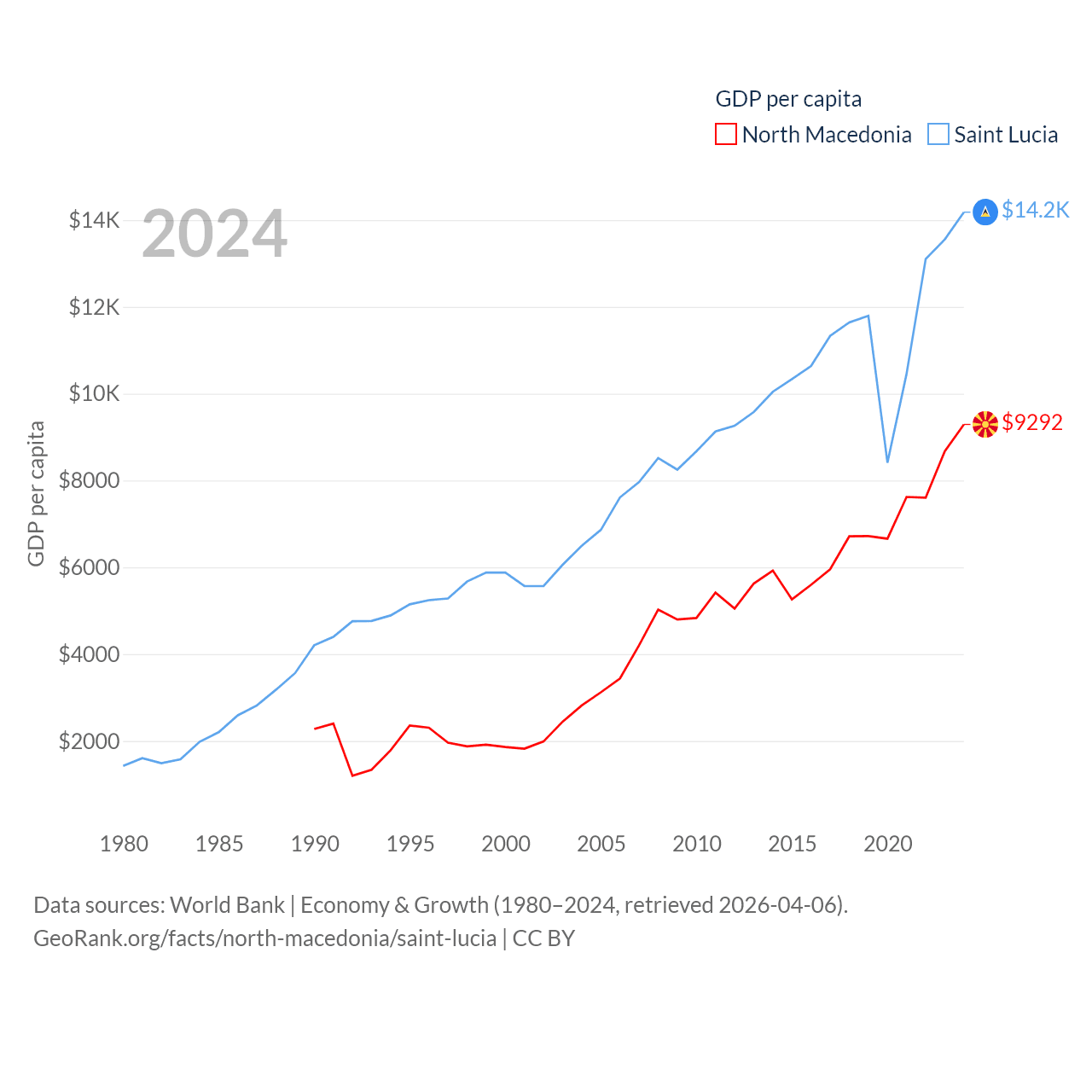 North Macedonia and Saint Lucia economies compared