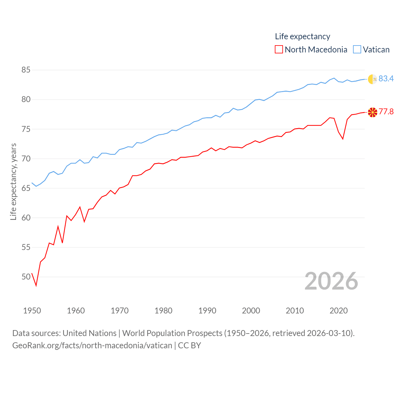 North Macedonia vs. Vatican life expectancy calculator