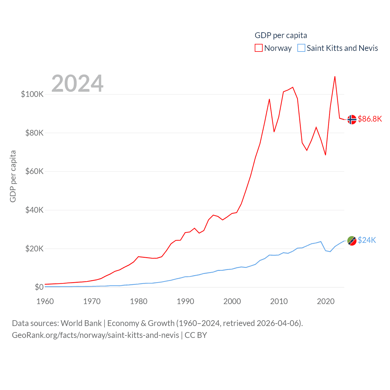 Norway and Saint Kitts and Nevis economies compared