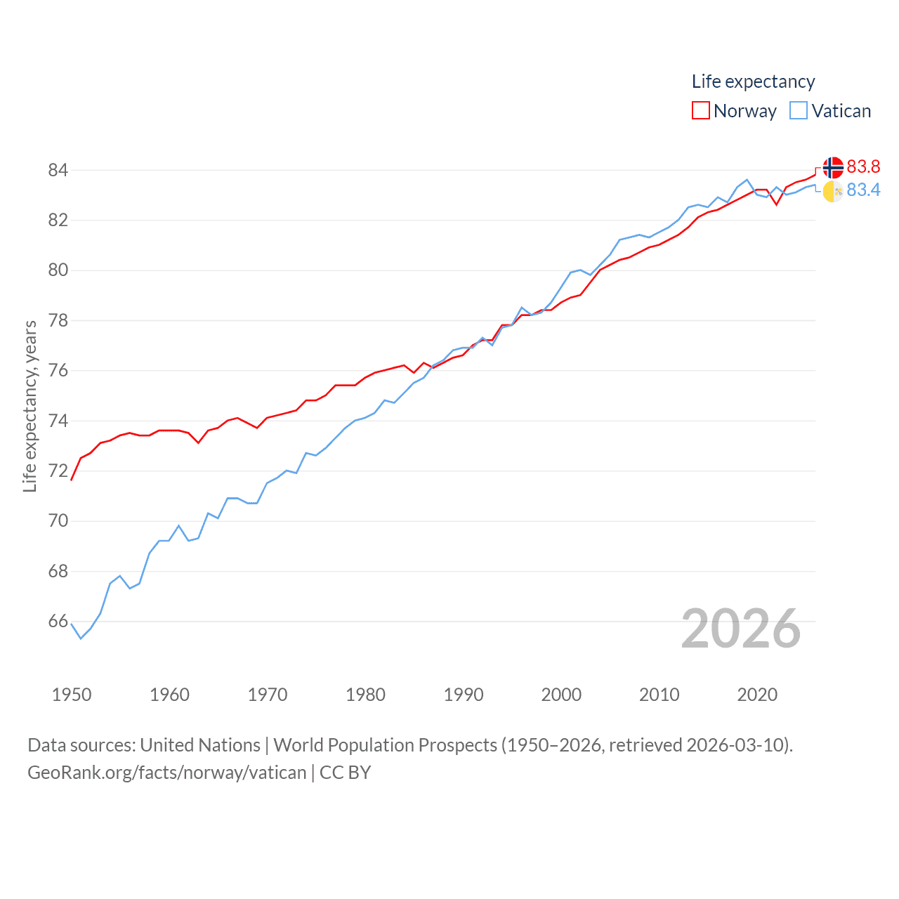 Norway vs. Vatican life expectancy calculator