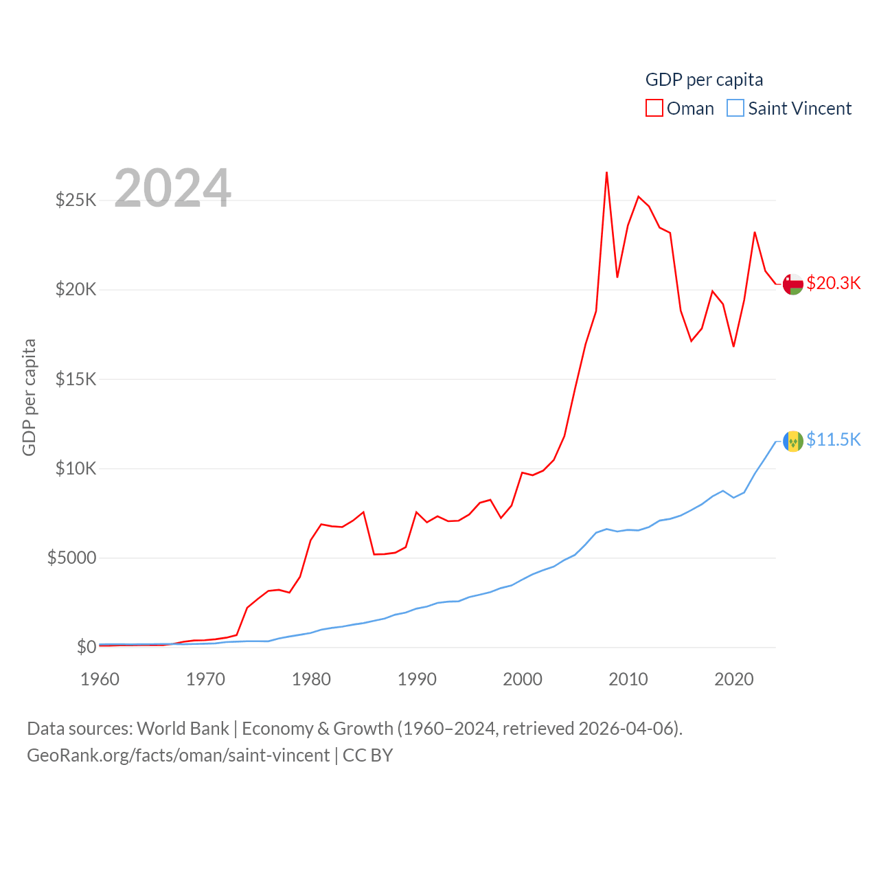 Oman and Saint Vincent economies compared