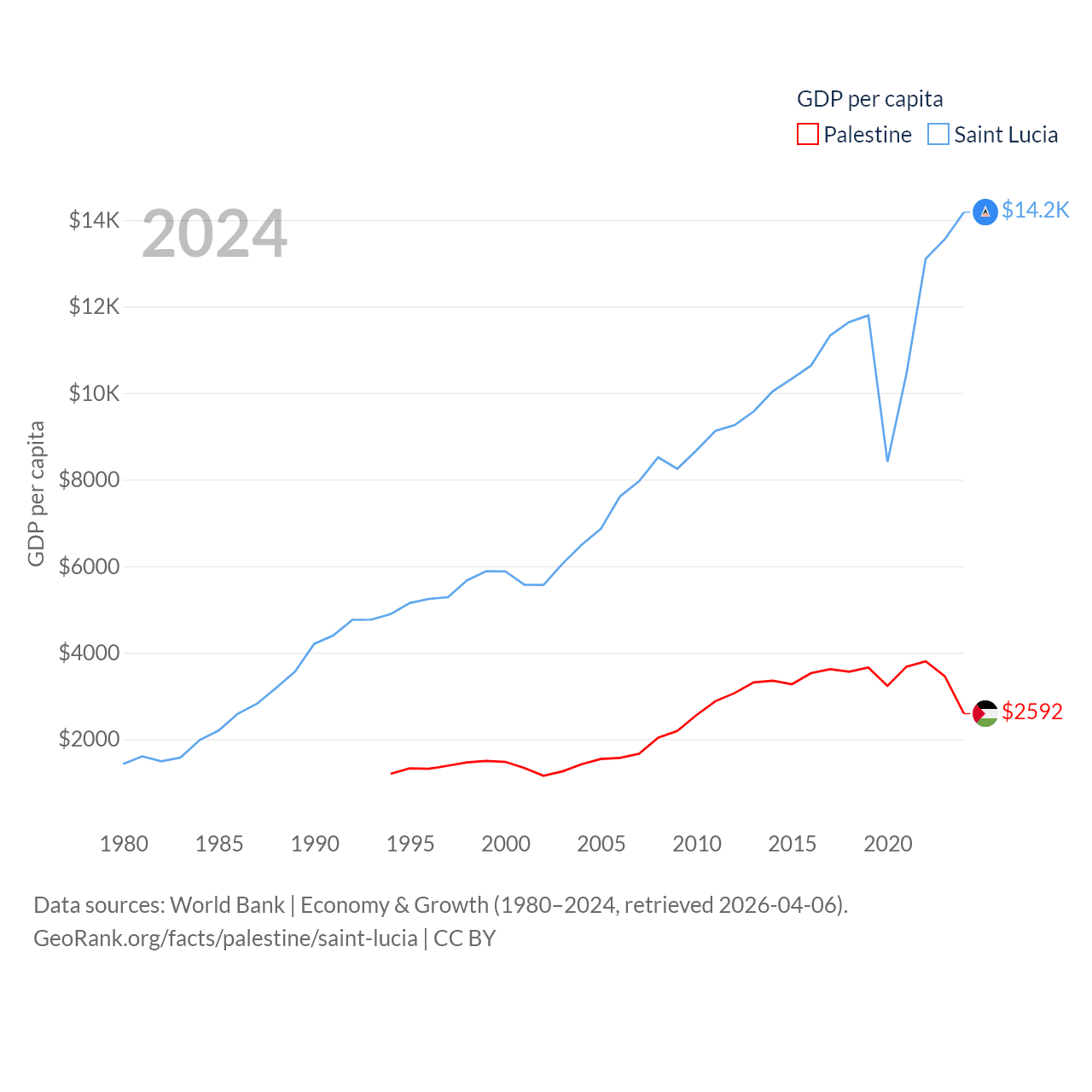 Palestine and Saint Lucia economies compared