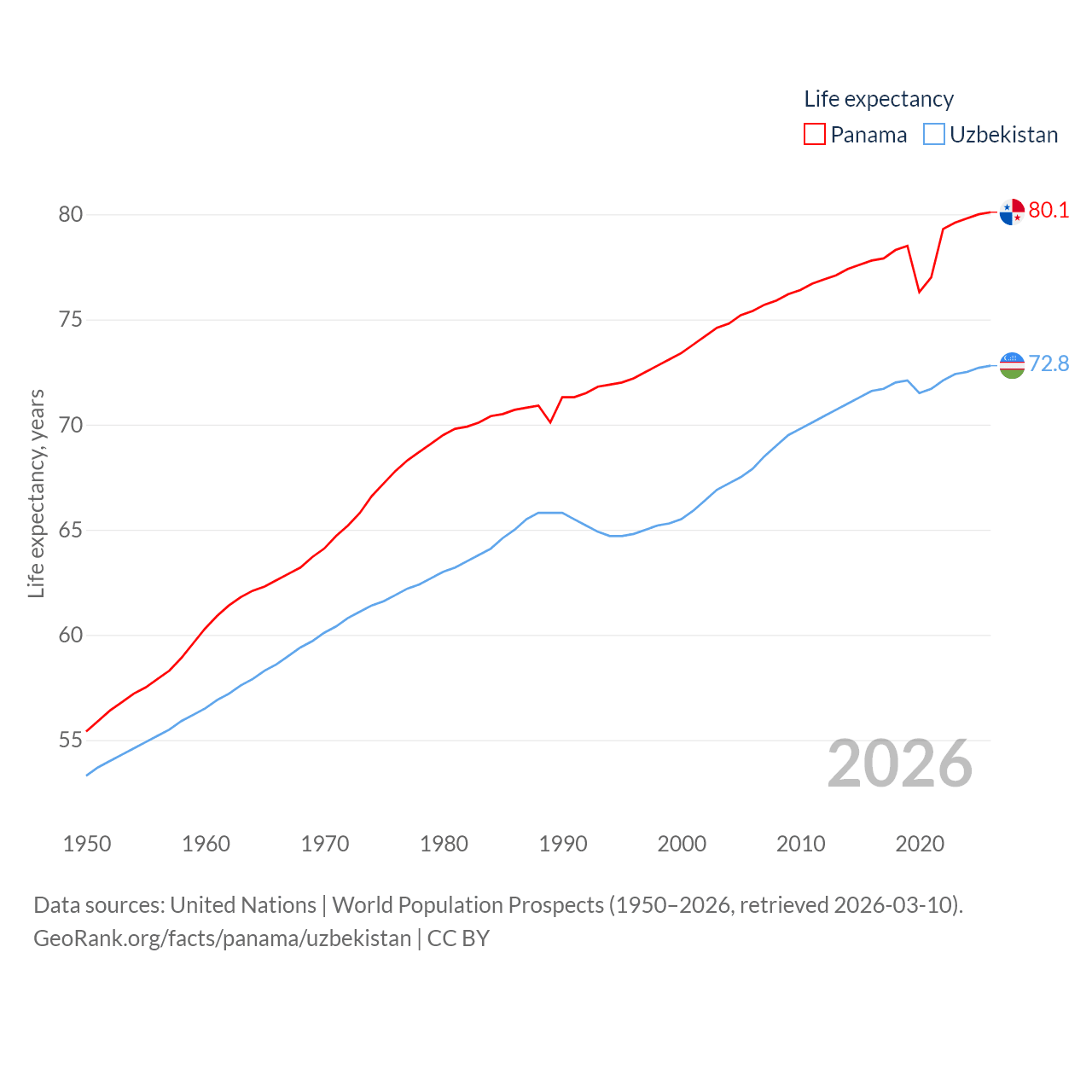 - United Nations | World Population Prospects (1950–2026, retrieved 2026-03-10)