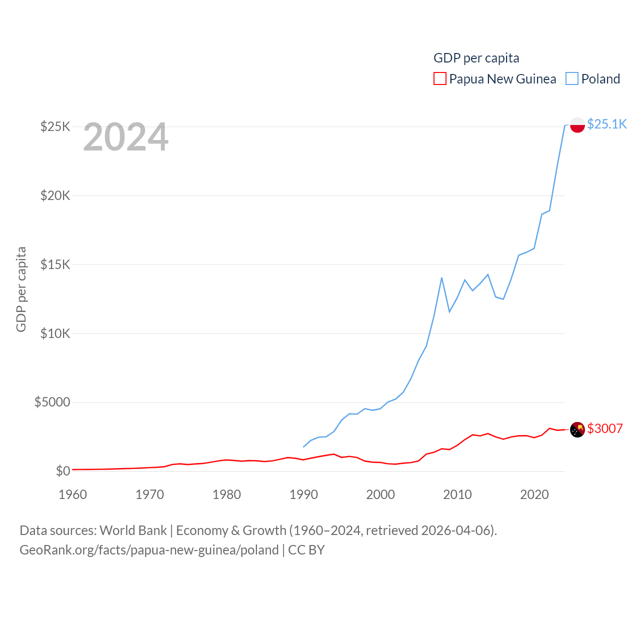 Papua New Guinea and Poland economies compared