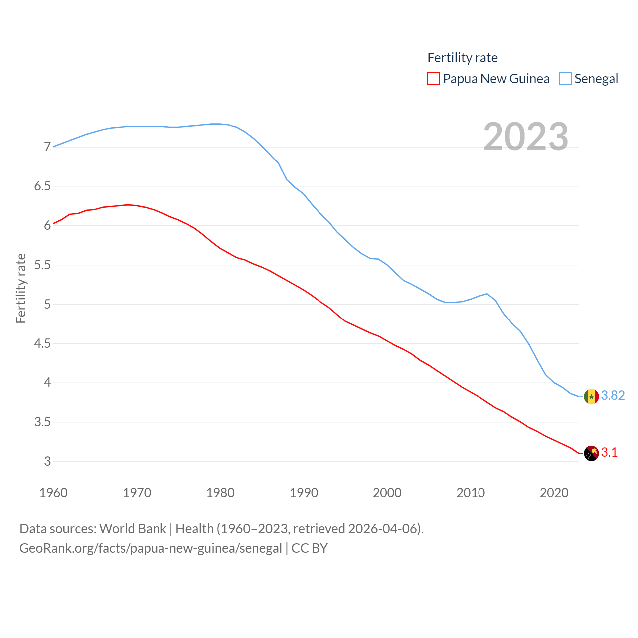- World Bank | Health (1960–2025, retrieved 2026-04-06)
