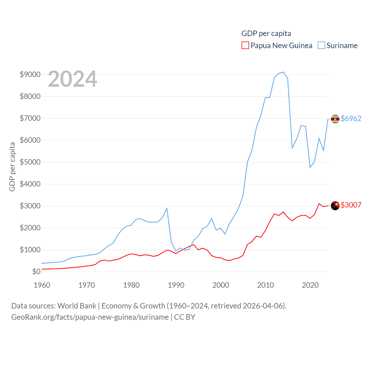 Papua New Guinea and Suriname economies compared
