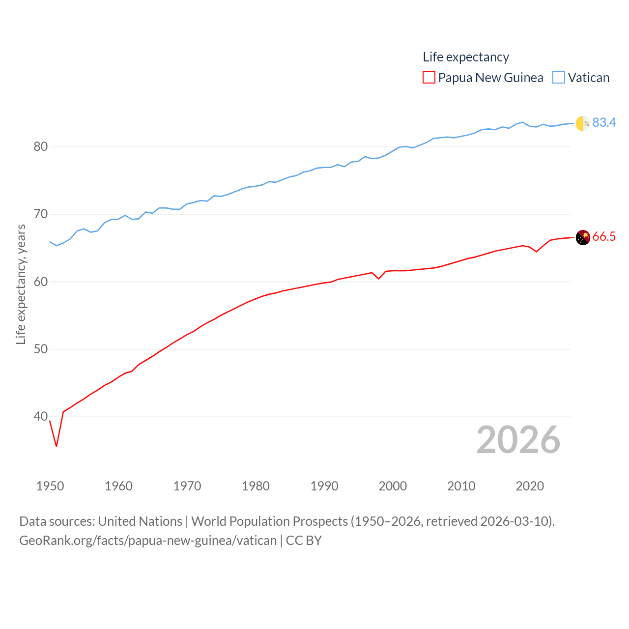 Papua New Guinea vs. Vatican life expectancy calculator