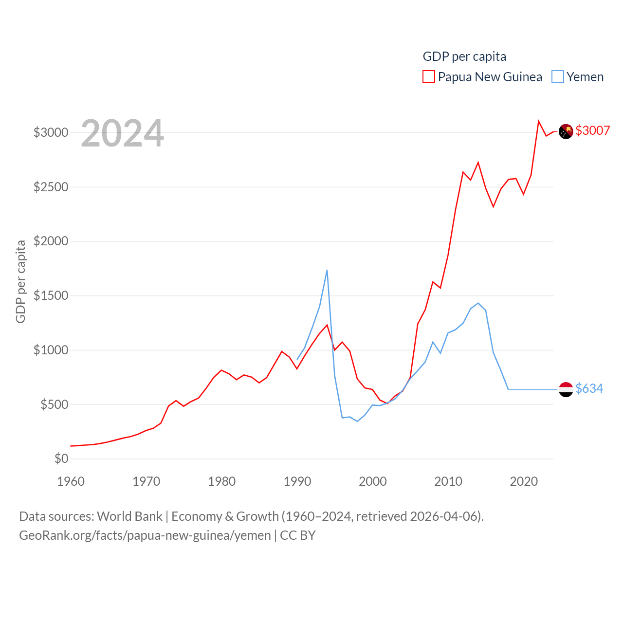 Papua New Guinea and Yemen economies compared