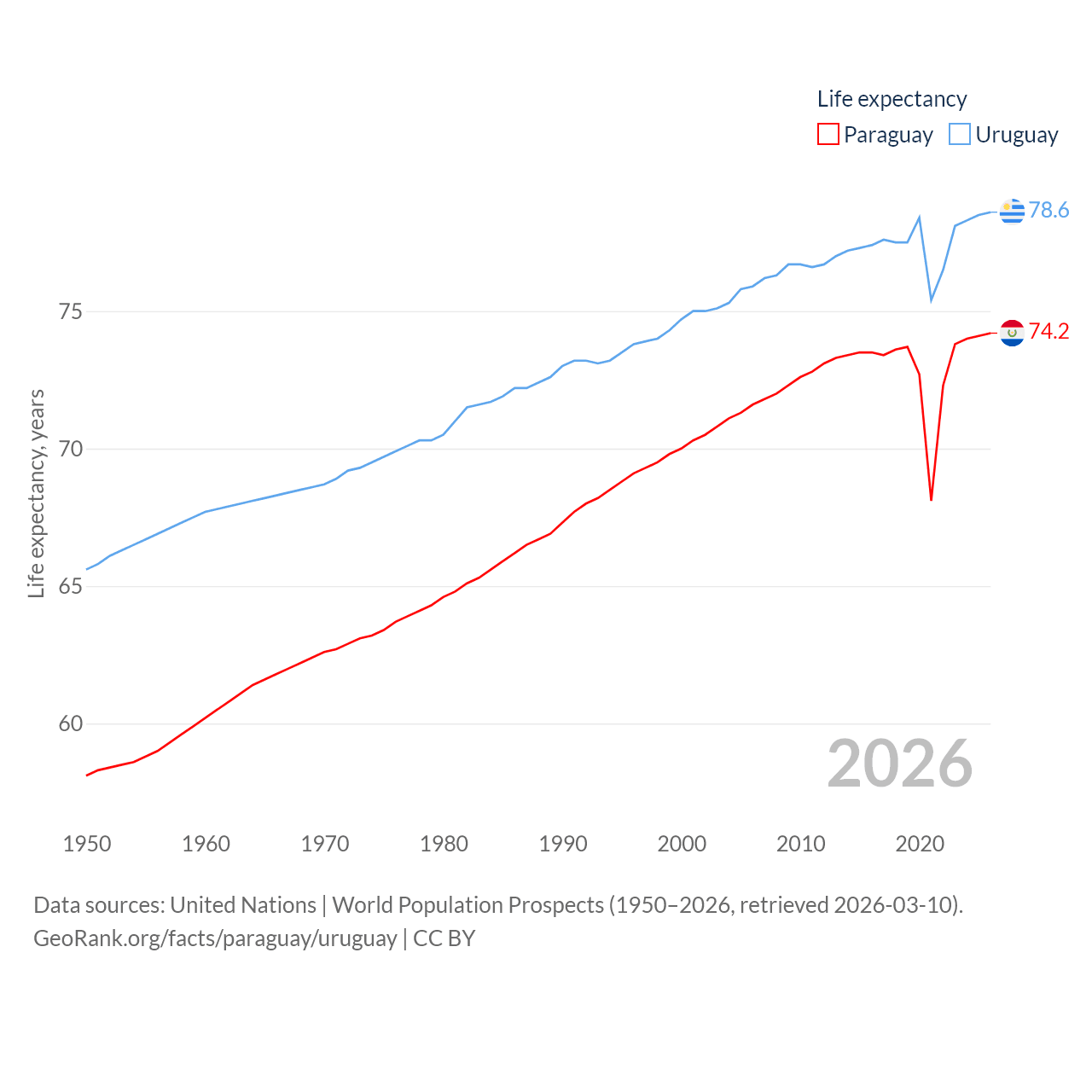 - United Nations | World Population Prospects (1950–2026, retrieved 2026-03-10)