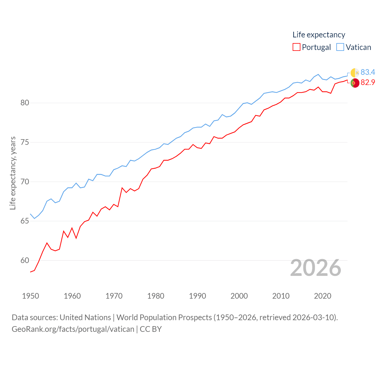 Portugal vs. Vatican life expectancy calculator