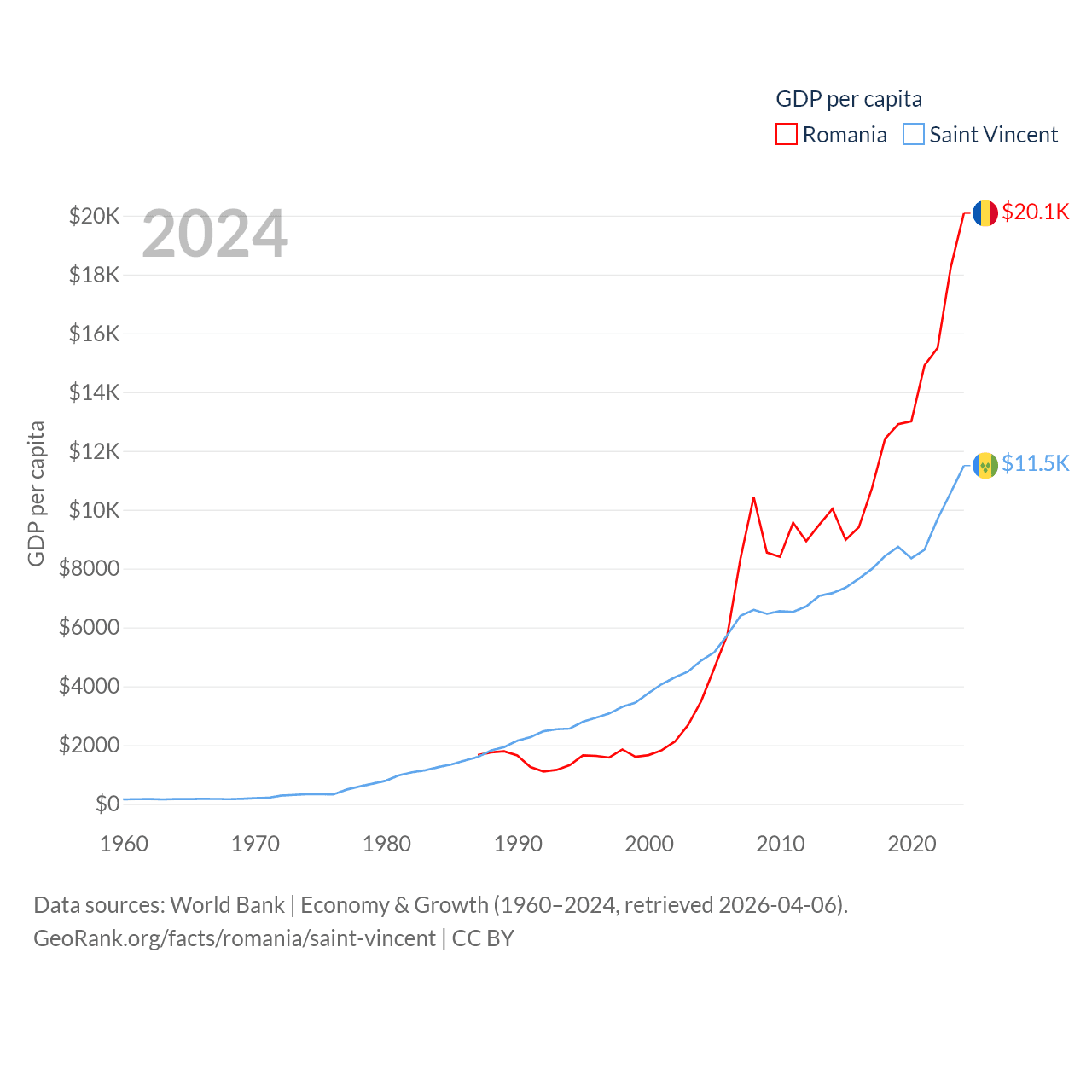 Romania and Saint Vincent economies compared