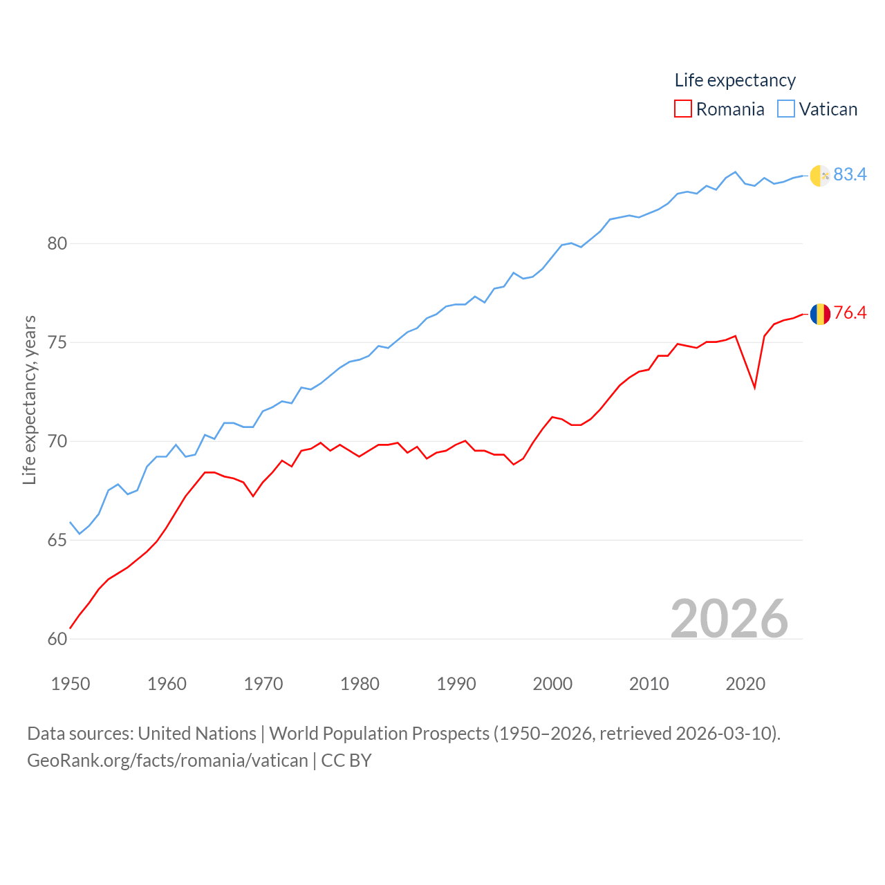 Romania vs. Vatican life expectancy calculator