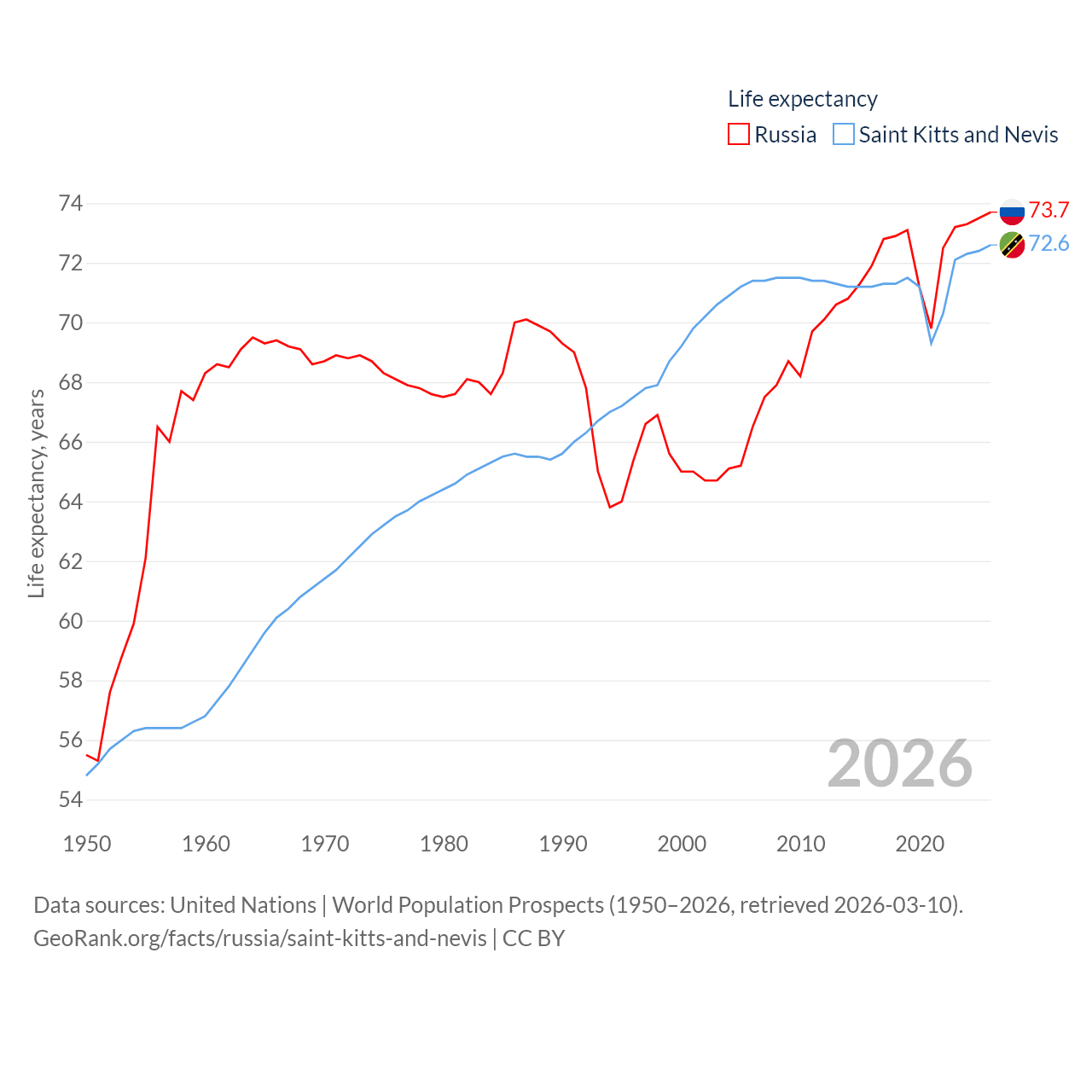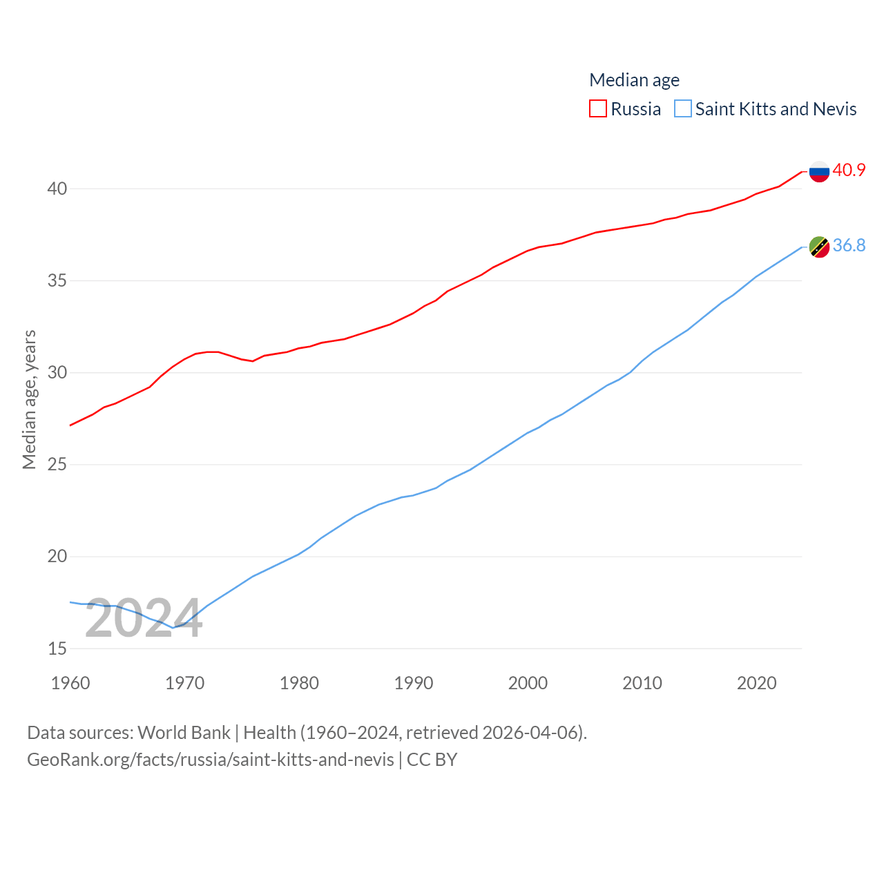 Russia and Saint Kitts and Nevis: Comparison Charts