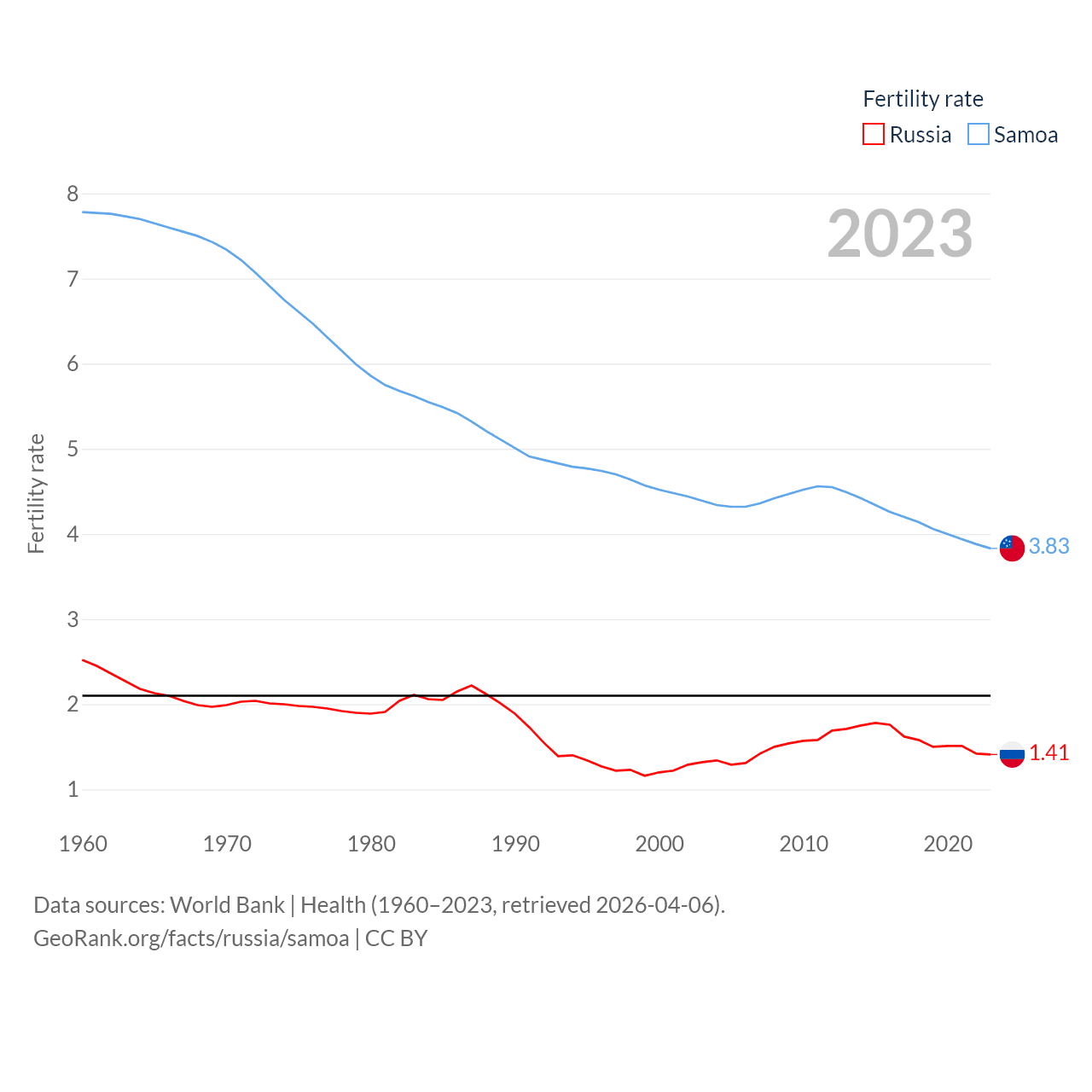 - World Bank | Health (1960–2025, retrieved 2026-04-06)