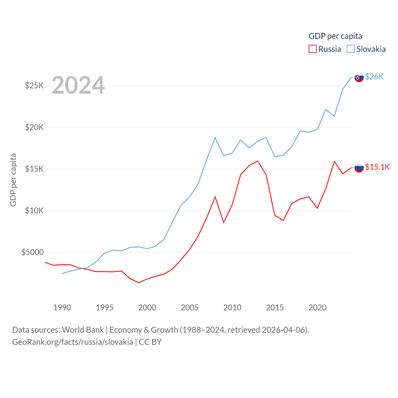 Data sources: World Bank | Economy & Growth (1988–2024, retrieved 2026-04-06).