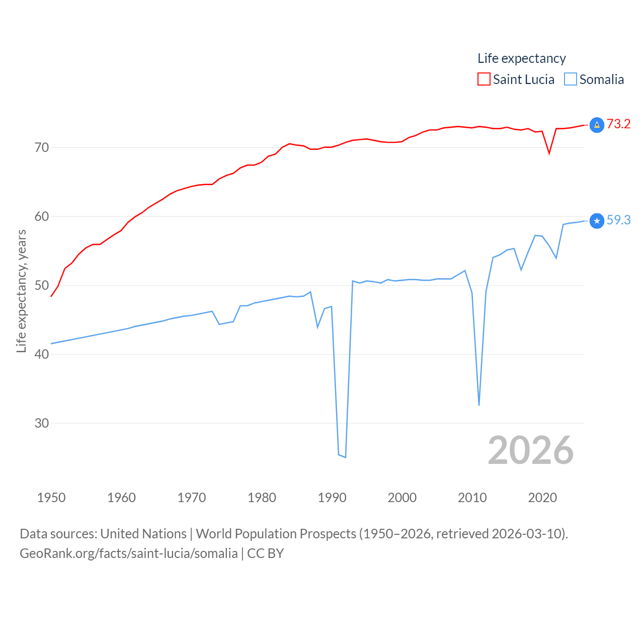 Saint Lucia and Somalia: Comparison Charts