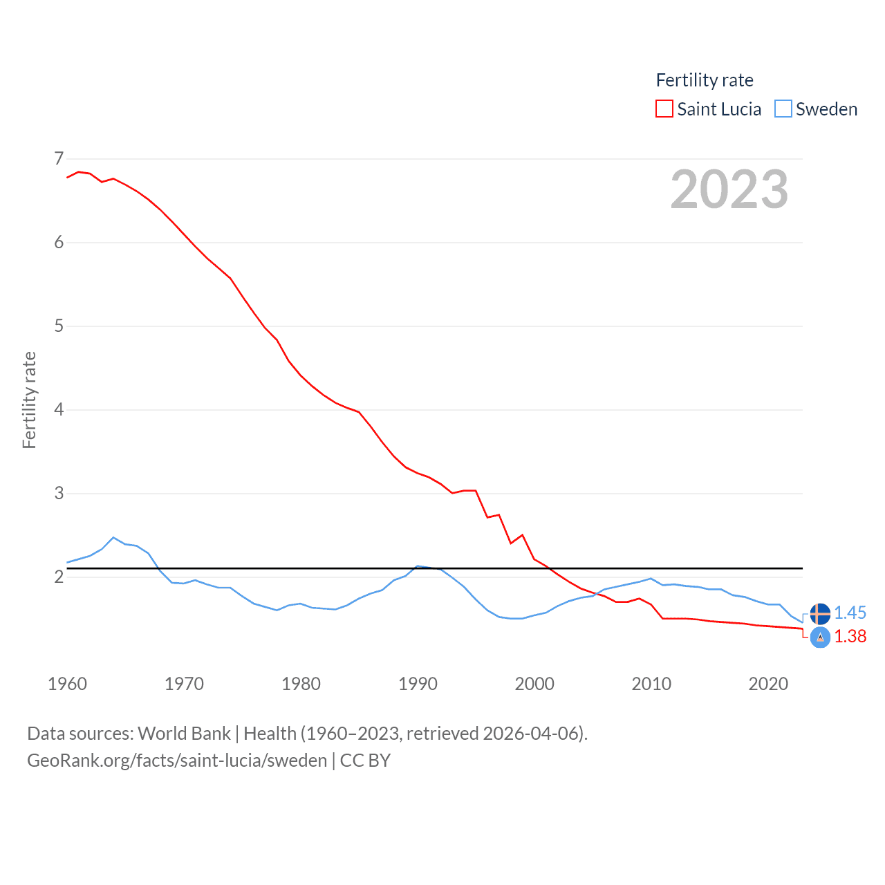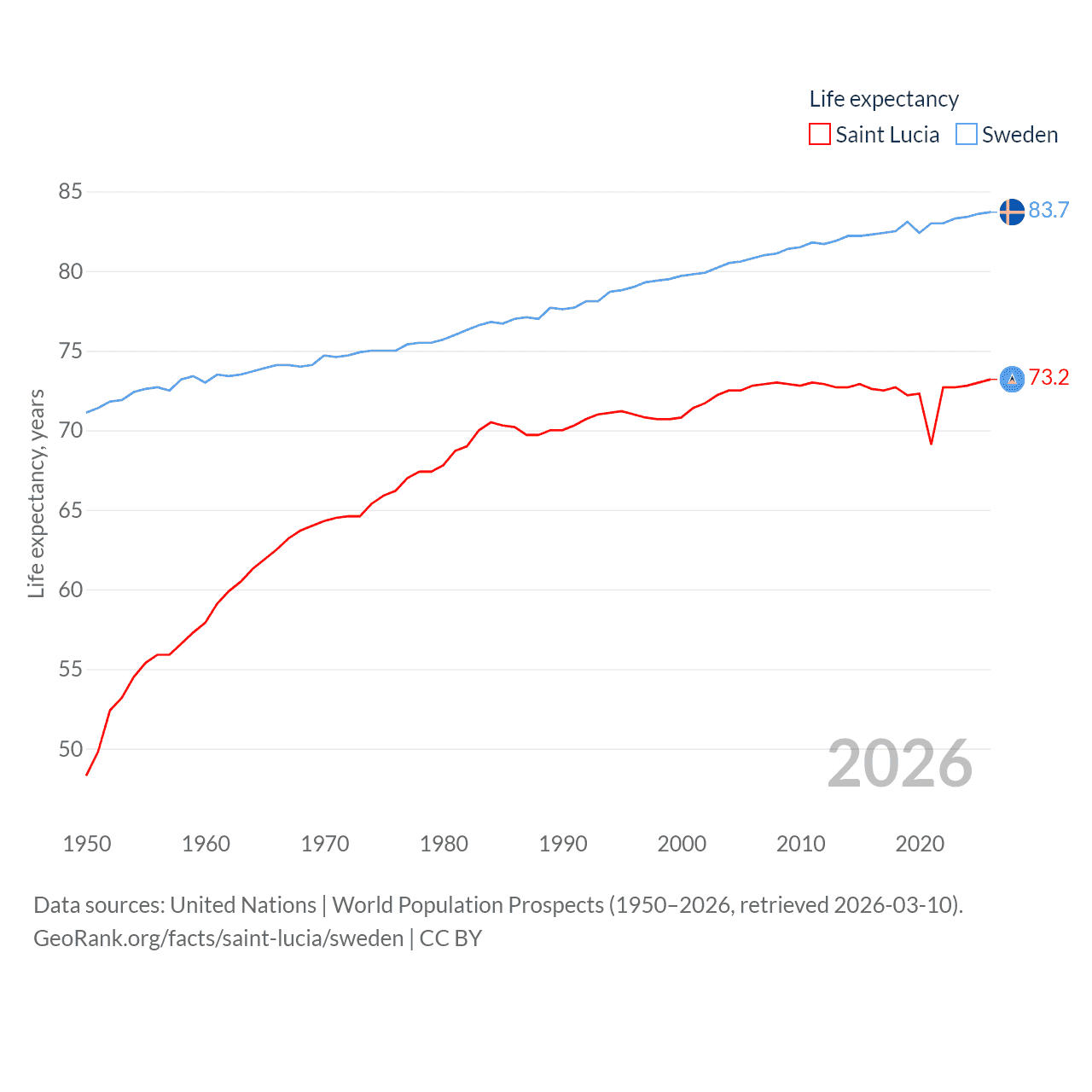 Saint Lucia and Sweden: Comparison Charts