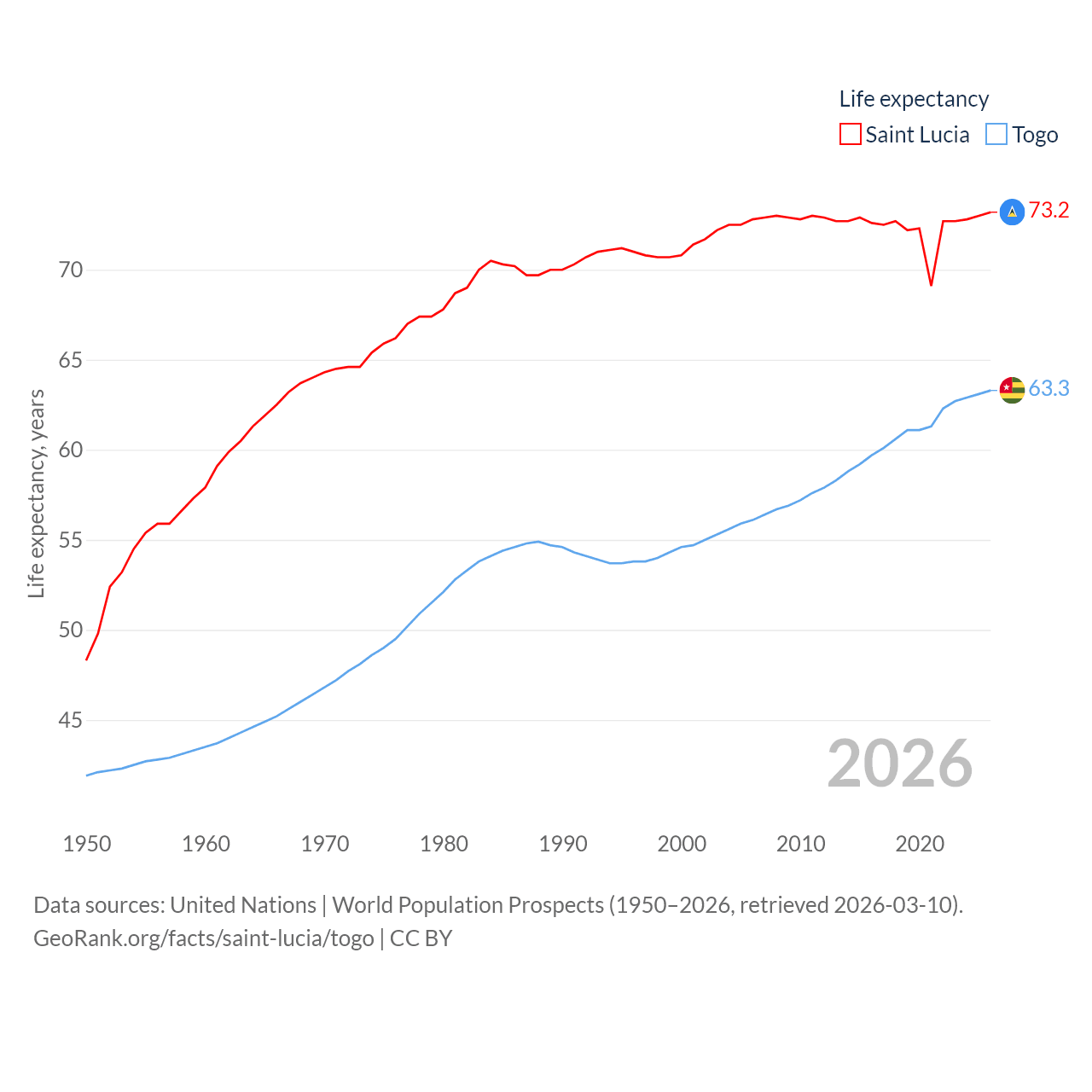 Saint Lucia and Togo: Comparison Charts