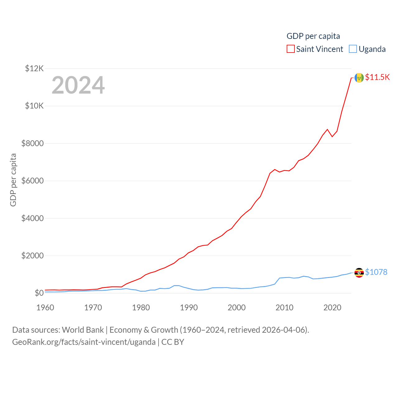 Saint Vincent and Uganda economies compared